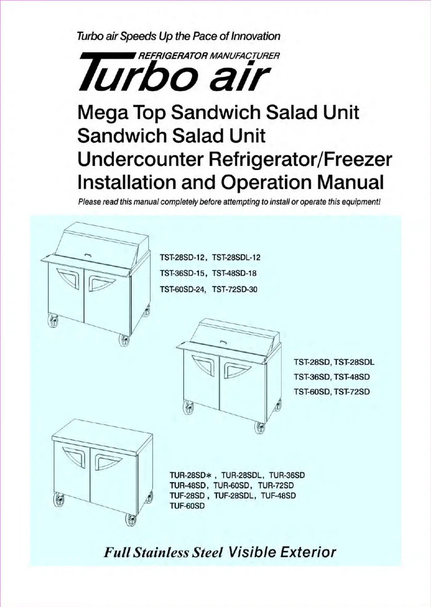 Lies die bedienungsanleitung für Turbo Air TST-60SD-24-N-CL (15 Seiten) kostenlos online; sie gehört zur Kategorie Kühlschrank. Dieses Handbuch wurde von 26 Personen als hilfreich bewertet und erhielt im Schnitt 4.9 Sterne aus 8 Bewertungen. Hast du eine Frage zu Turbo Air TST-60SD-24-N-CL oder möchtest du andere Nutzer dieses Produkts befragen? Stelle eine Frage