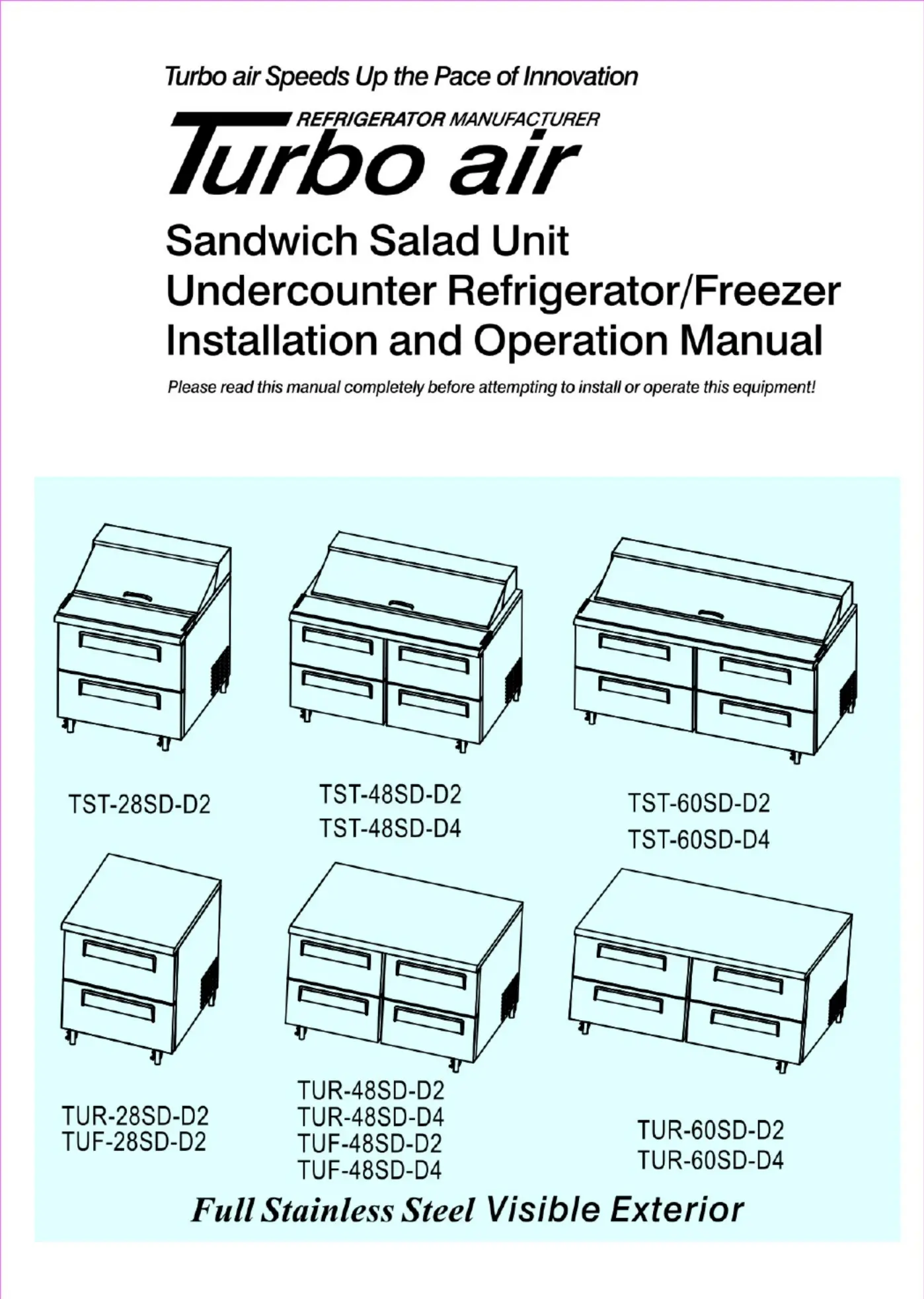 Lies die bedienungsanleitung für Turbo Air TST-72SD-30 (15 Seiten) kostenlos online; sie gehört zur Kategorie Kühlschrank. Dieses Handbuch wurde von 20 Personen als hilfreich bewertet und erhielt im Schnitt 4.2 Sterne aus 10.5 Bewertungen. Hast du eine Frage zu Turbo Air TST-72SD-30 oder möchtest du andere Nutzer dieses Produkts befragen? Stelle eine Frage