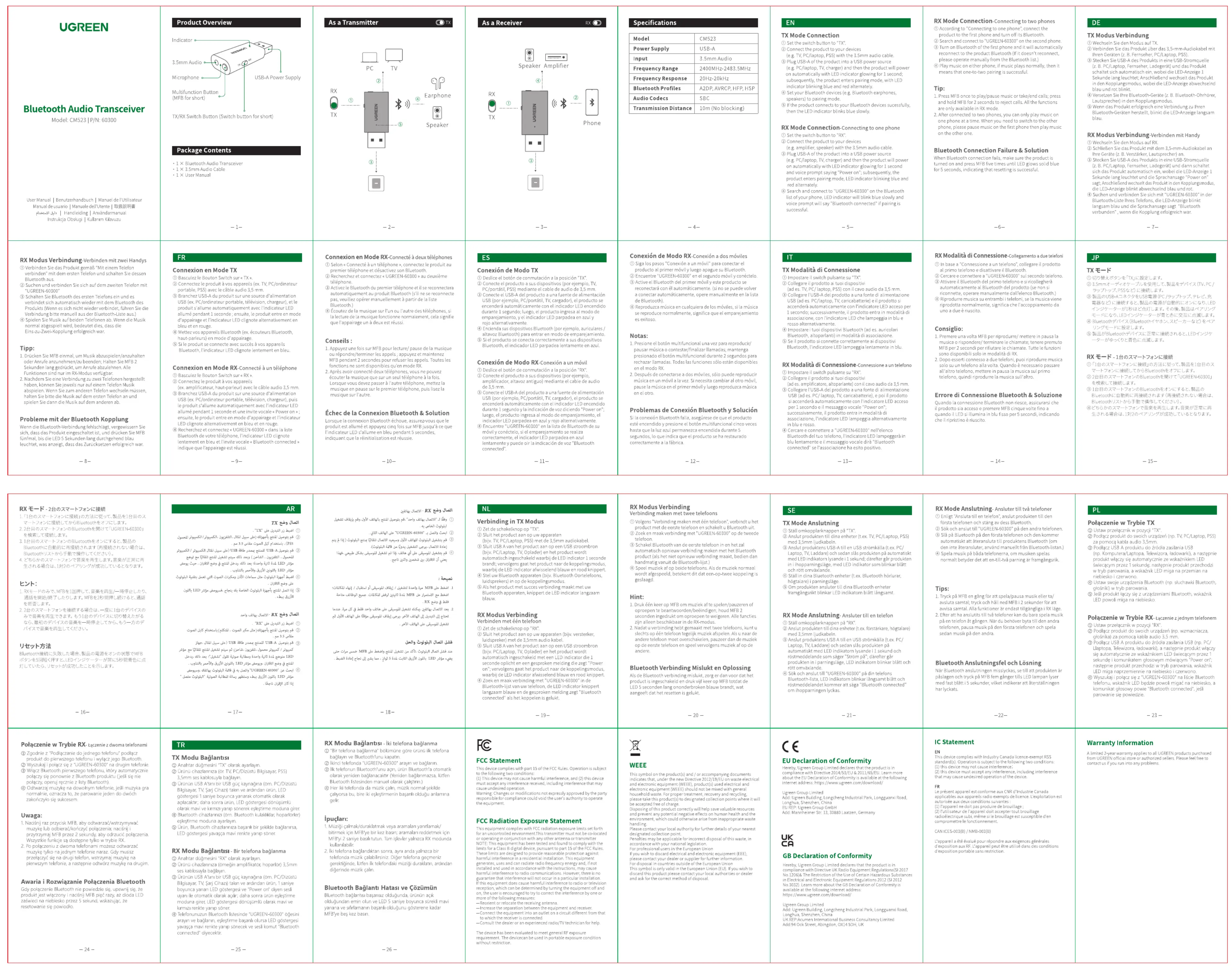 Lies die bedienungsanleitung für Ugreen CM523 (1 Seiten) kostenlos online; sie gehört zur Kategorie Nicht kategorisiert. Dieses Handbuch wurde von 2 Personen als hilfreich bewertet und erhielt im Schnitt 4.7 Sterne aus 4 Bewertungen. Hast du eine Frage zu Ugreen CM523 oder möchtest du andere Nutzer dieses Produkts befragen? Stelle eine Frage