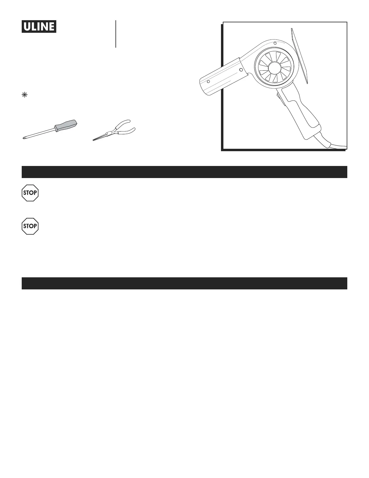 Lies die bedienungsanleitung für Uline H-8094 (9 Seiten) kostenlos online; sie gehört zur Kategorie Hitzepistole. Dieses Handbuch wurde von 2 Personen als hilfreich bewertet und erhielt im Schnitt 4.4 Sterne aus 2 Bewertungen. Hast du eine Frage zu Uline H-8094 oder möchtest du andere Nutzer dieses Produkts befragen? Stelle eine Frage