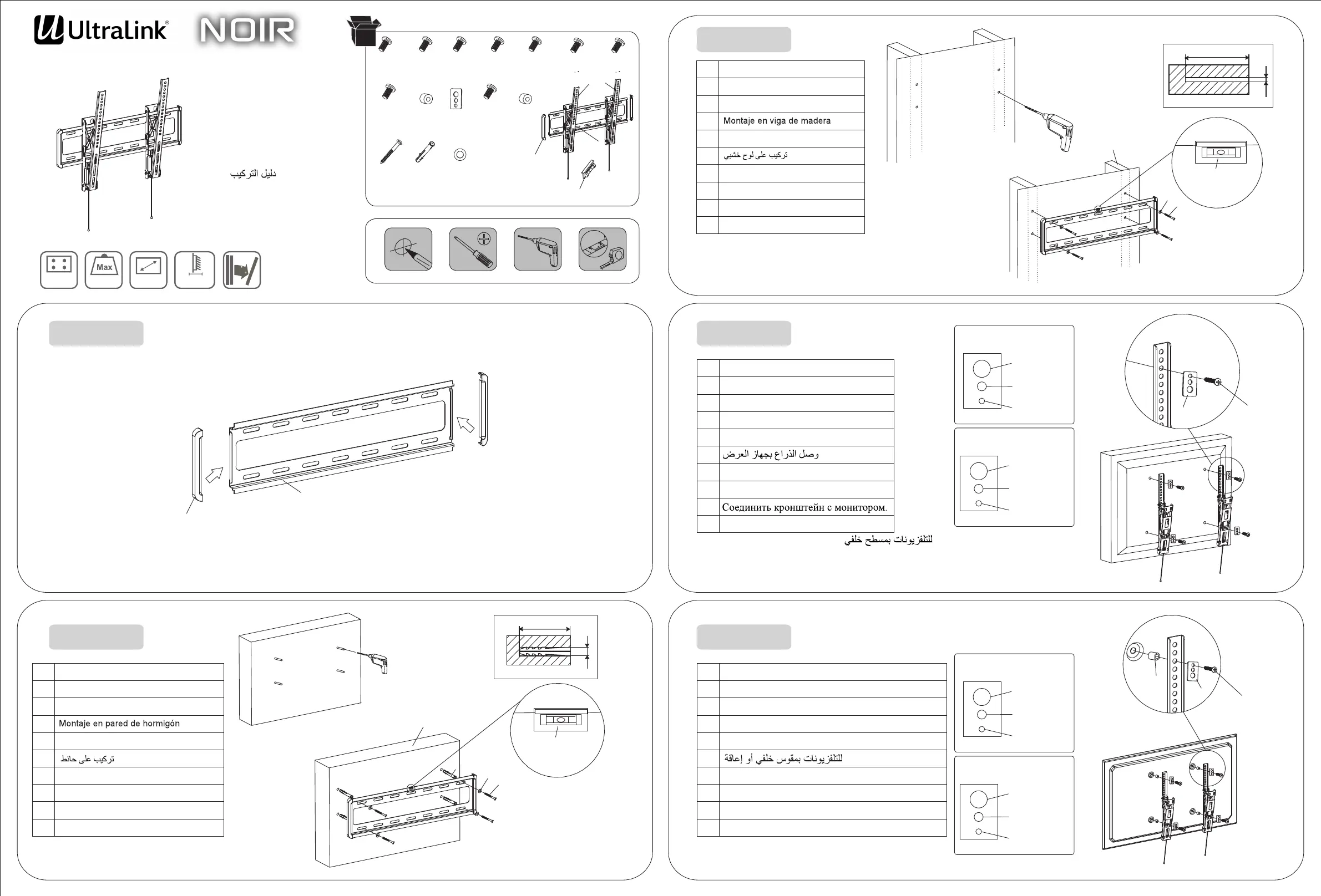 Lies die bedienungsanleitung für UltraLink Noir ULNWT4X4 (2 Seiten) kostenlos online; sie gehört zur Kategorie Flachbildschirmunterstützung. Dieses Handbuch wurde von 22 Personen als hilfreich bewertet und erhielt im Schnitt 4.6 Sterne aus 11.5 Bewertungen. Hast du eine Frage zu UltraLink Noir ULNWT4X4 oder möchtest du andere Nutzer dieses Produkts befragen? Stelle eine Frage