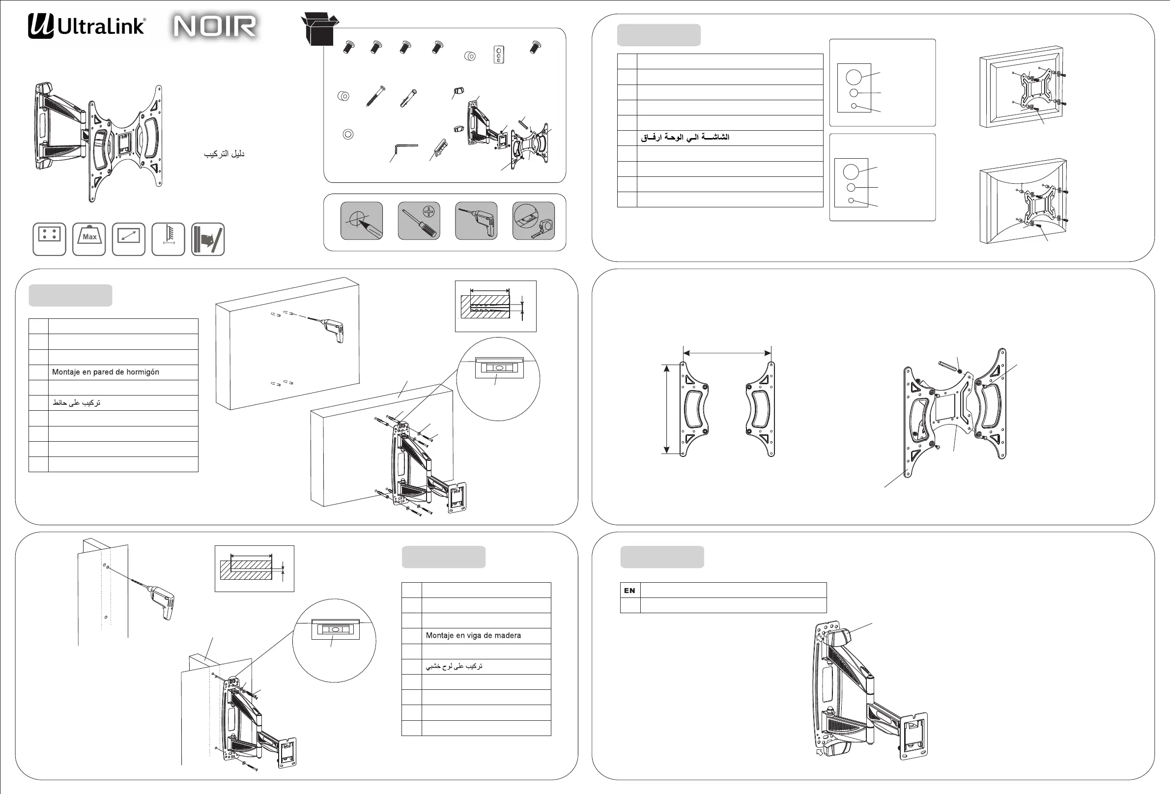 Lies die bedienungsanleitung für UltraLink ULNWS4X4 (2 Seiten) kostenlos online; sie gehört zur Kategorie Flachbildschirmunterstützung. Dieses Handbuch wurde von 19 Personen als hilfreich bewertet und erhielt im Schnitt 4.7 Sterne aus 10 Bewertungen. Hast du eine Frage zu UltraLink ULNWS4X4 oder möchtest du andere Nutzer dieses Produkts befragen? Stelle eine Frage