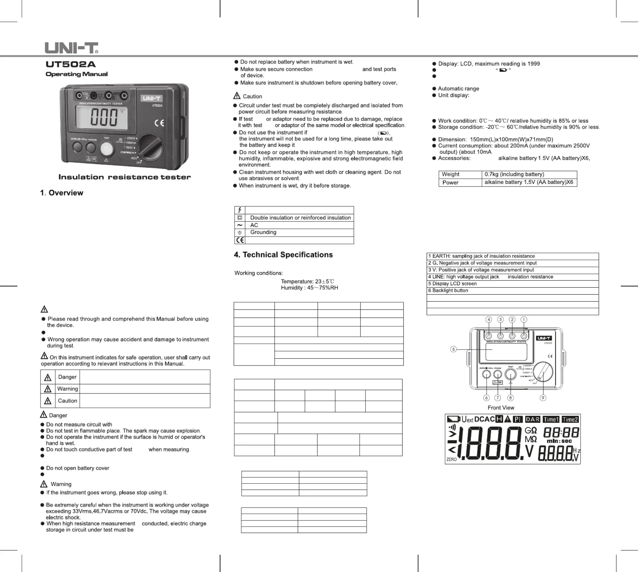 Lies die bedienungsanleitung für Uni-T UT502A (2 Seiten) kostenlos online; sie gehört zur Kategorie Messgeräte. Dieses Handbuch wurde von 31 Personen als hilfreich bewertet und erhielt im Schnitt 5.0 Sterne aus 16 Bewertungen. Hast du eine Frage zu Uni-T UT502A oder möchtest du andere Nutzer dieses Produkts befragen? Stelle eine Frage