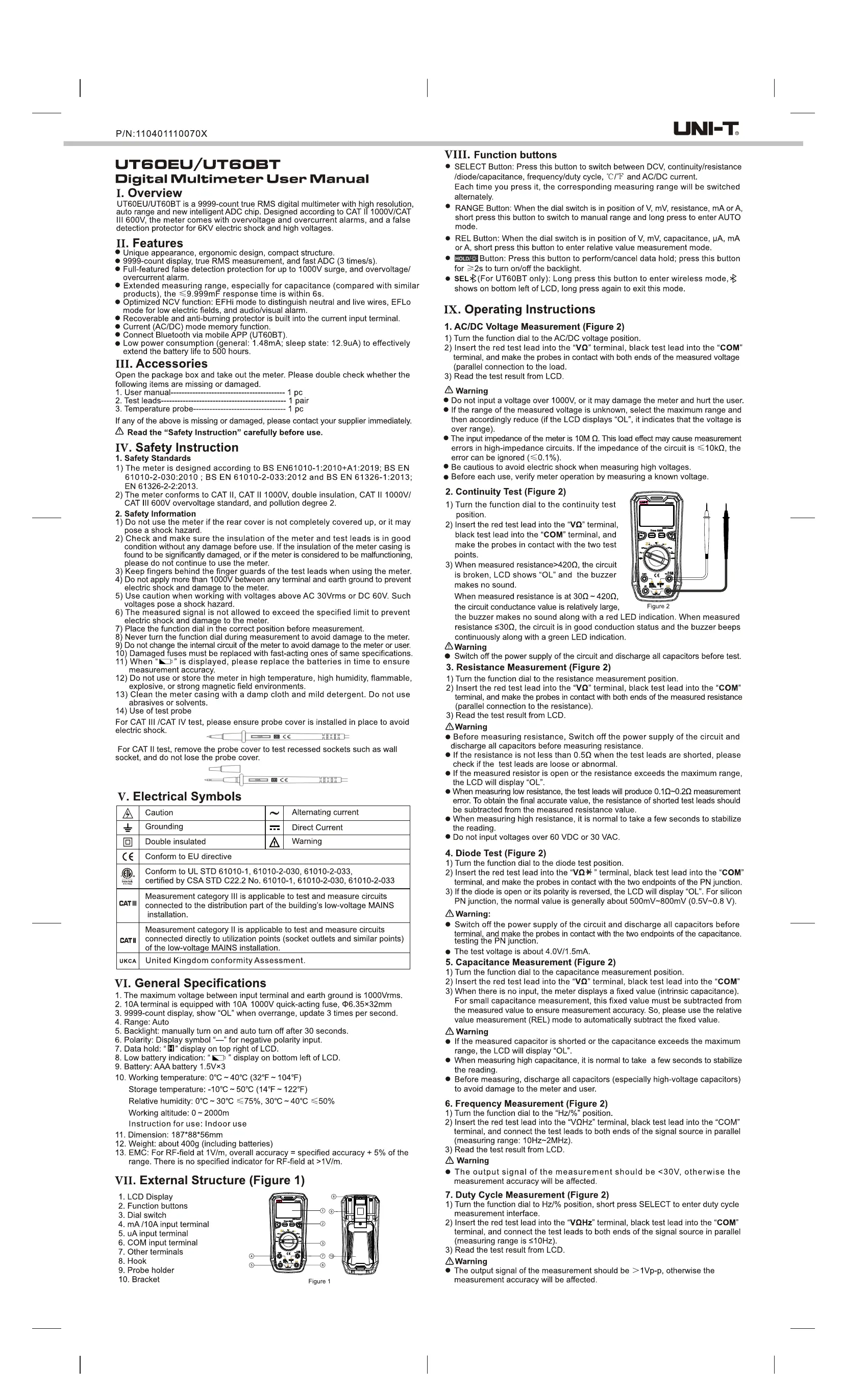 Lies die bedienungsanleitung für Uni-T UT60S (2 Seiten) kostenlos online; sie gehört zur Kategorie Multimeter. Dieses Handbuch wurde von 2 Personen als hilfreich bewertet und erhielt im Schnitt 4.3 Sterne aus 8 Bewertungen. Hast du eine Frage zu Uni-T UT60S oder möchtest du andere Nutzer dieses Produkts befragen? Stelle eine Frage