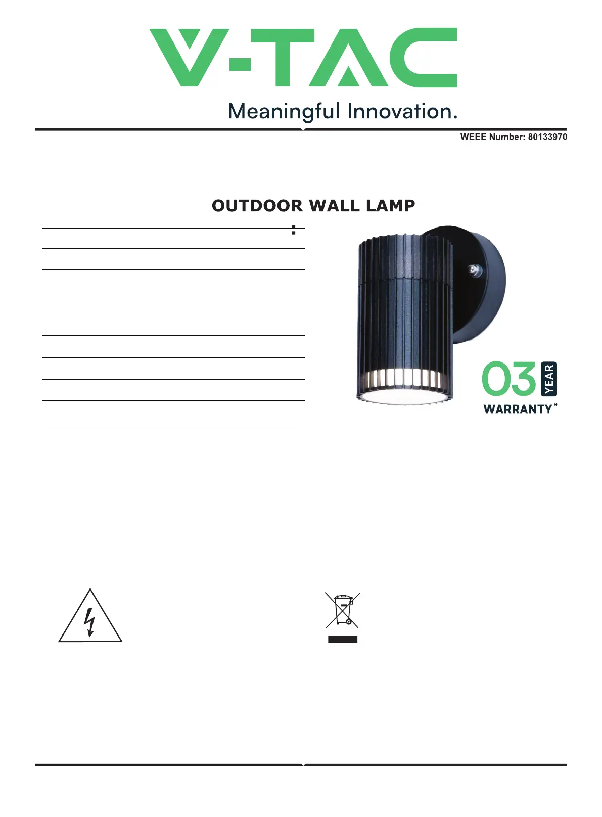 Thank you for selecting and buying V-TAC product. V-TAC will serve you the best. Please read these instruc-