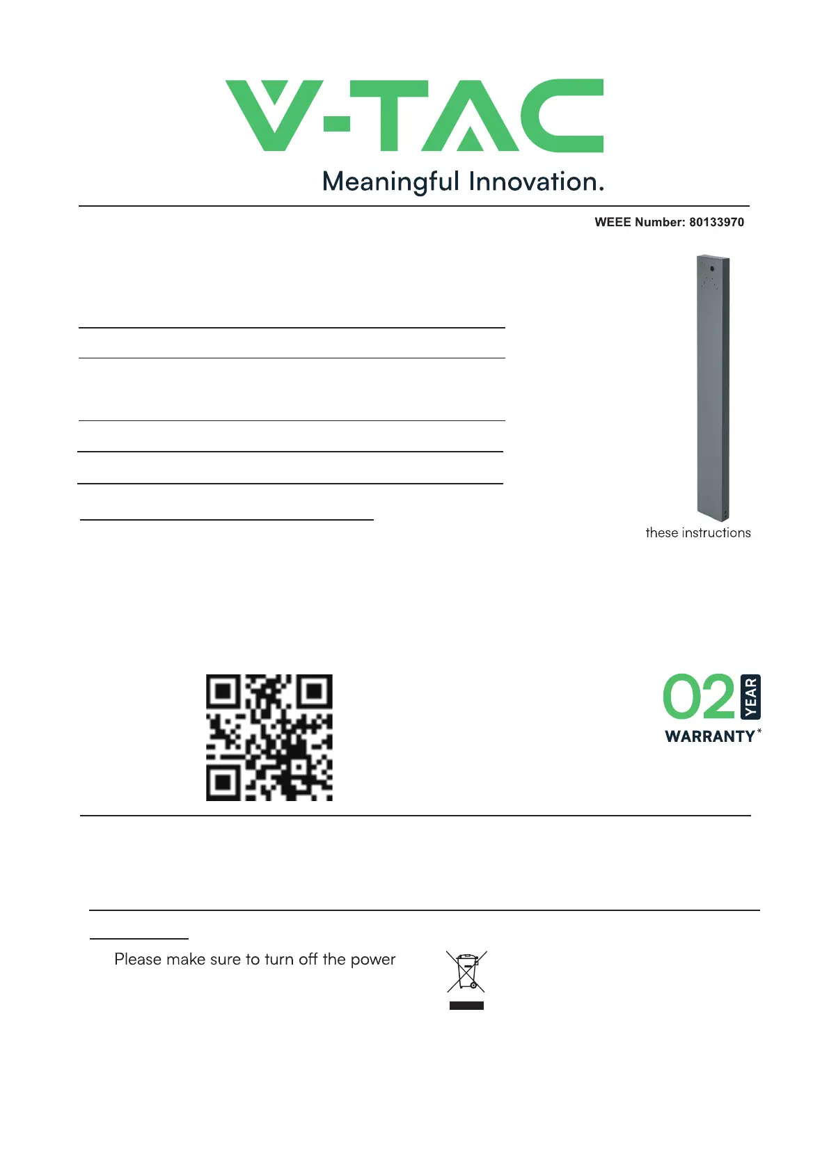 In case of any query/issue with the product, please reach out to us at: support@v-tac.eu