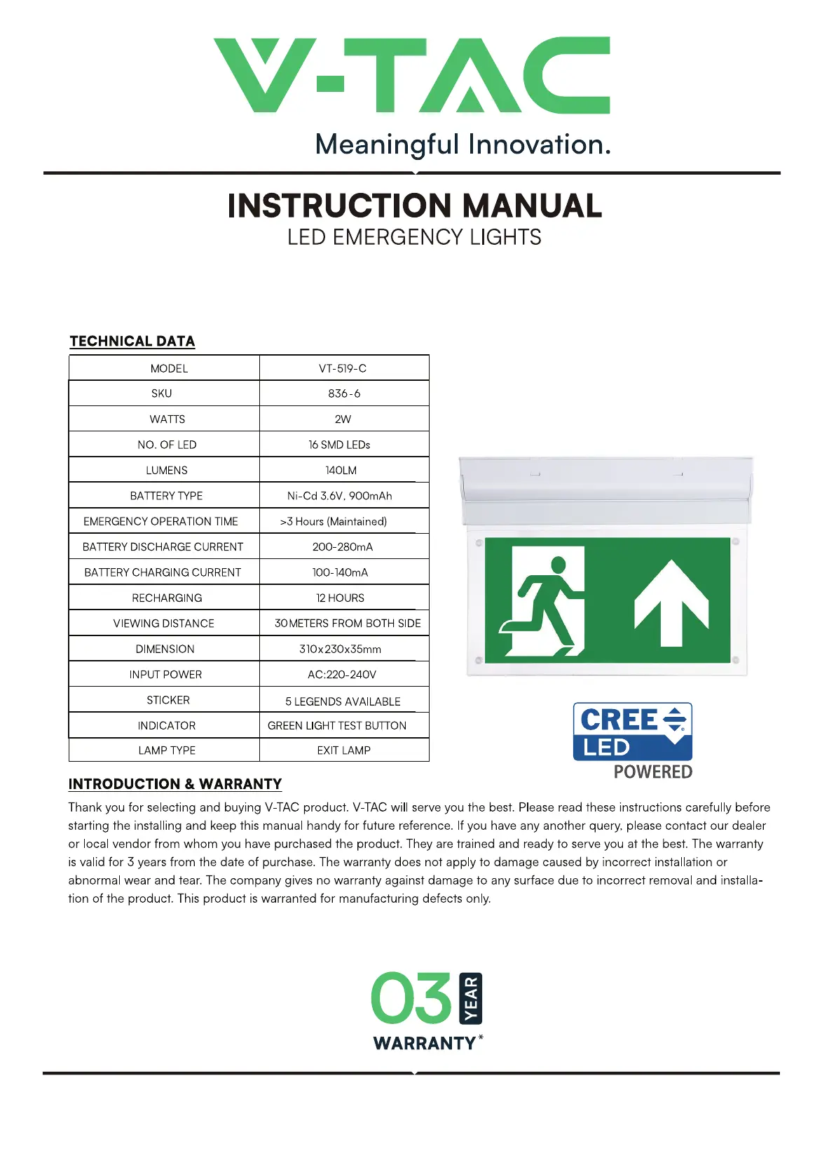 Bedienungsanleitung Beleuchtung V-TAC