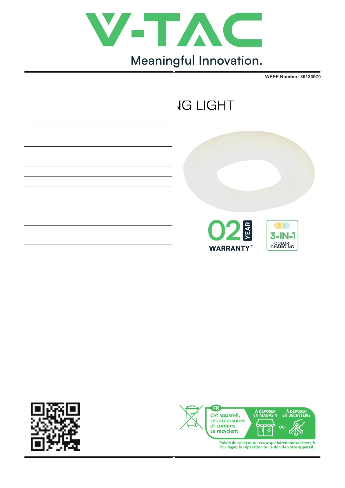 Thank you for selecting and buying V-TAC product. V-TAC will serve you the best. Please read these