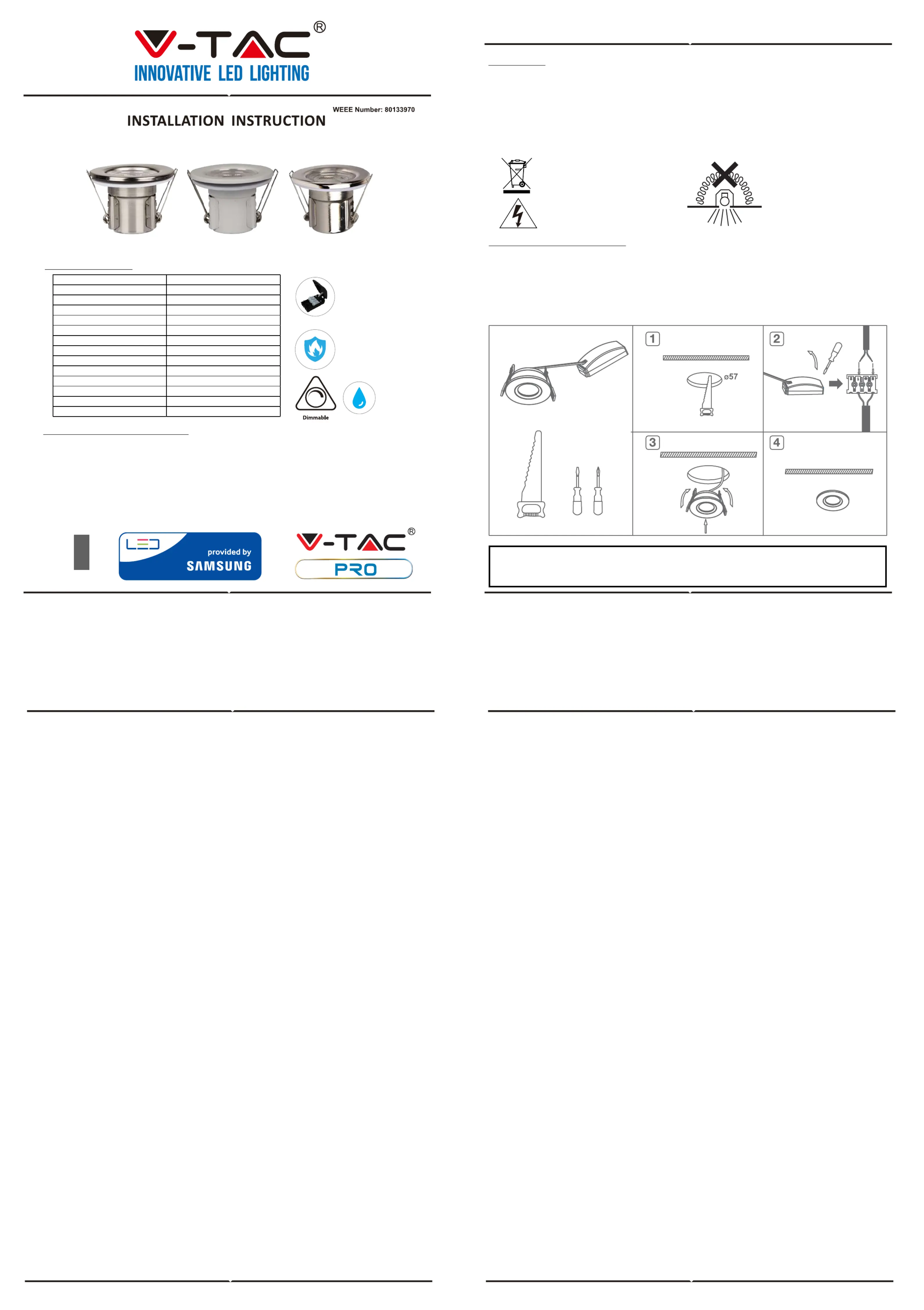 Thank you for selecting and buying V-TAC product. V-TAC will serve you the best. Please read these