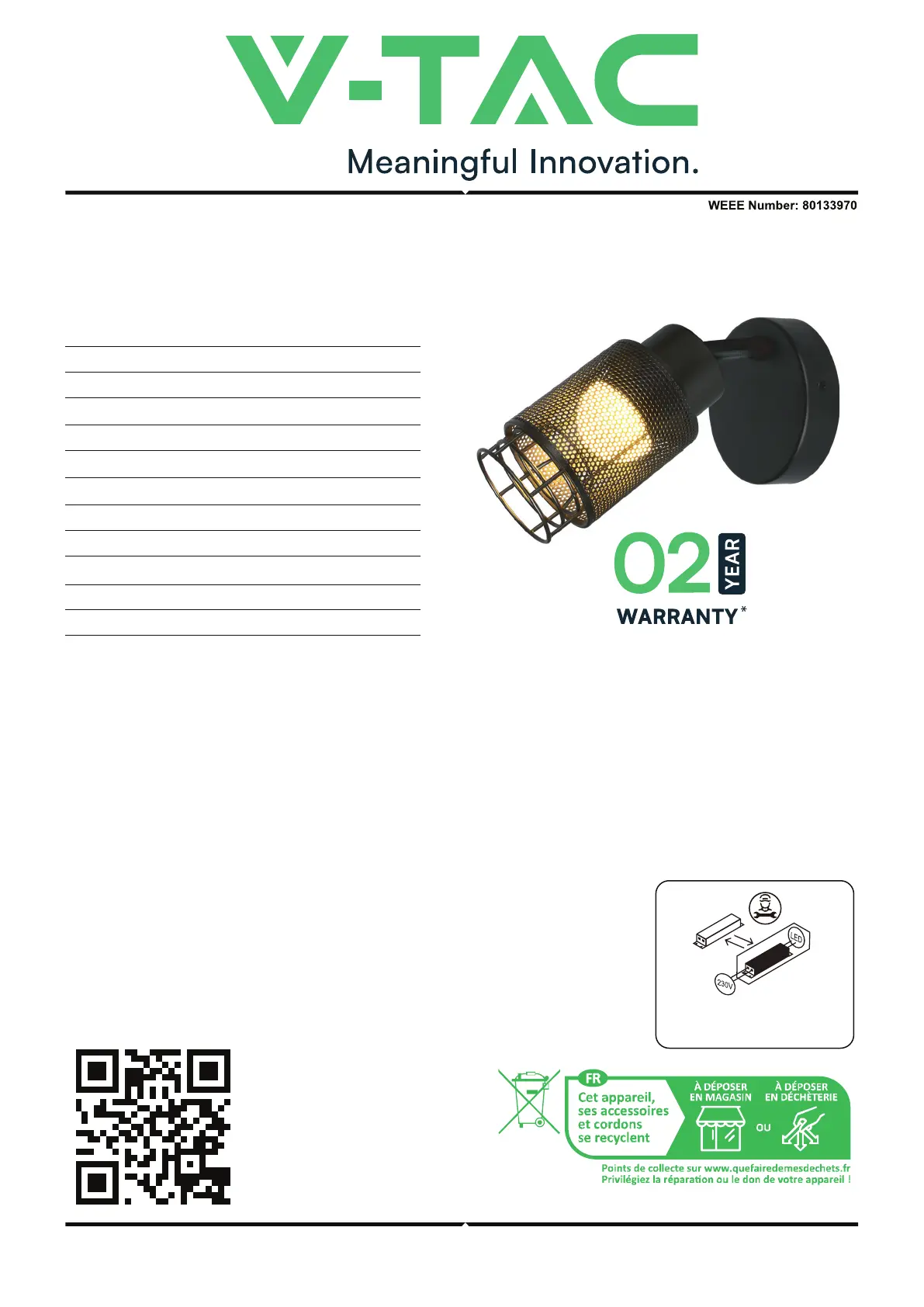 Thank you for selecting and buying V-TAC product. V-TAC will serve you the best. Please read these instruc-