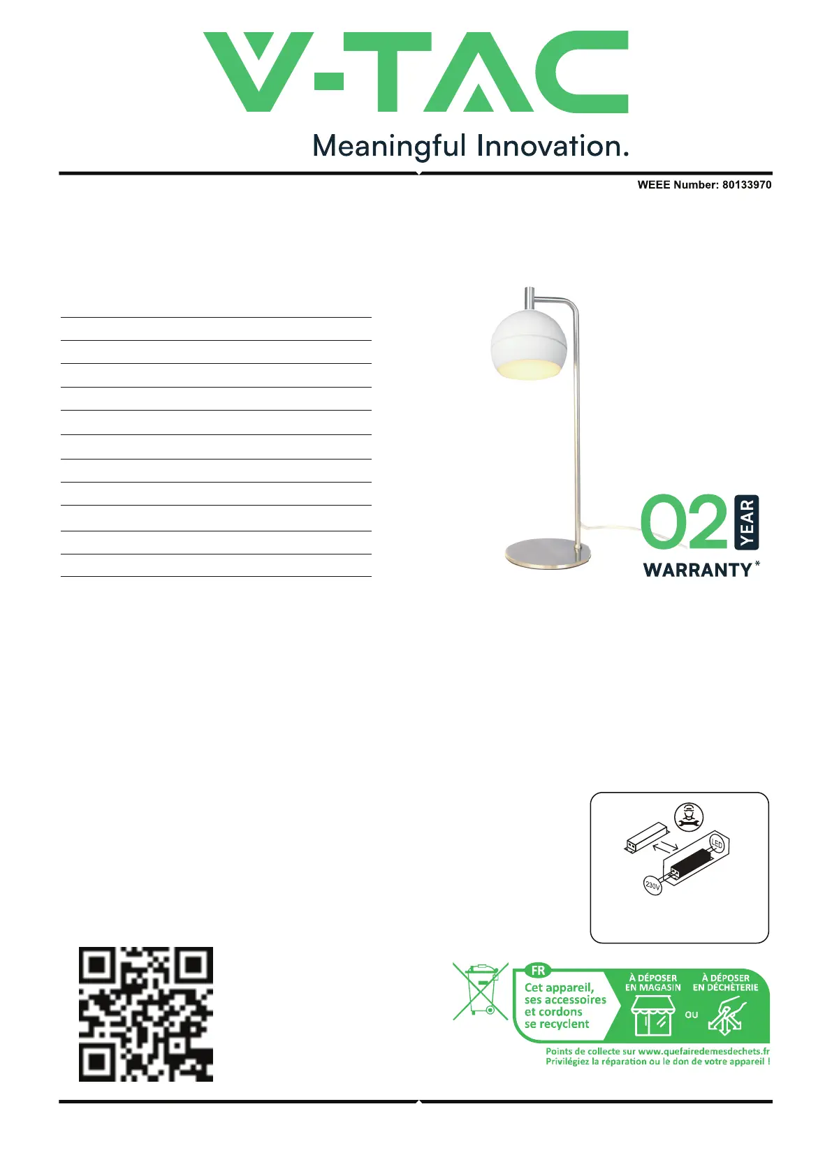 Thank you for selecting and buying V-TAC product. V-TAC will serve you the best. Please read these instruc-