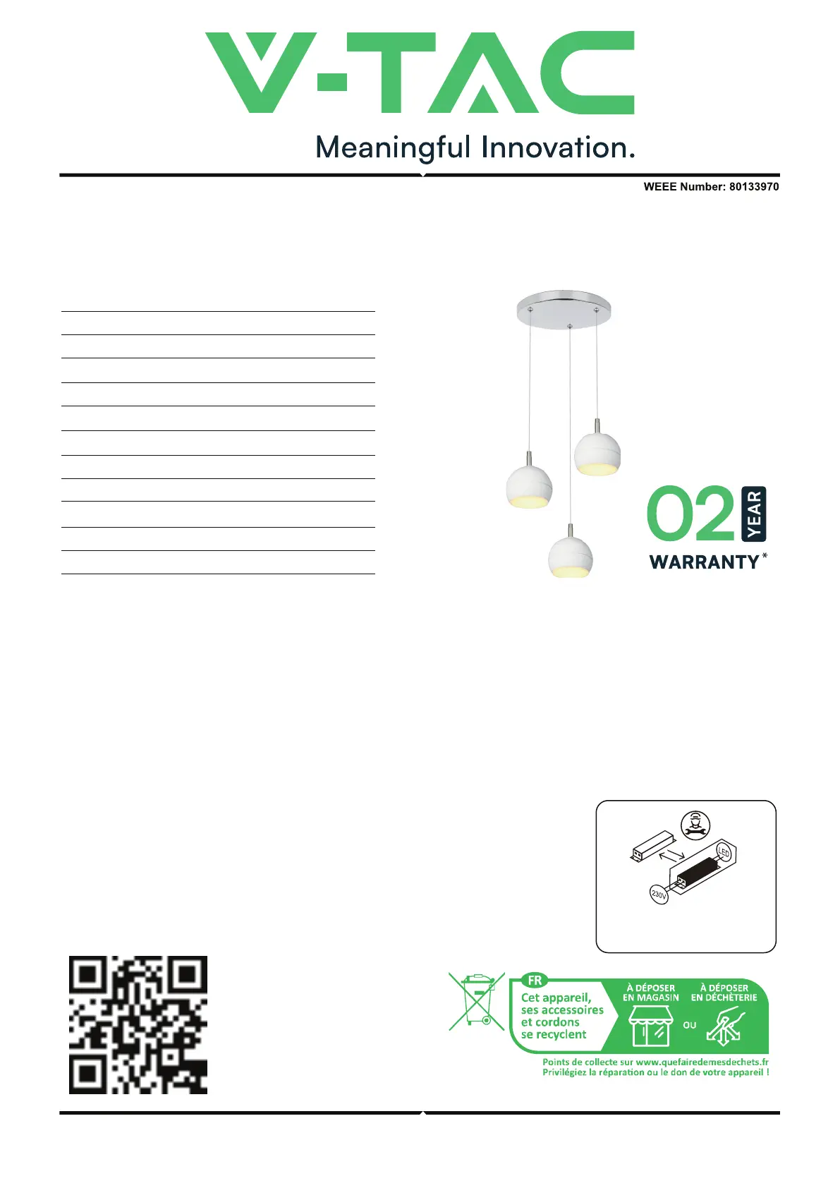 Thank you for selecting and buying V-TAC product. V-TAC will serve you the best. Please read these instruc-