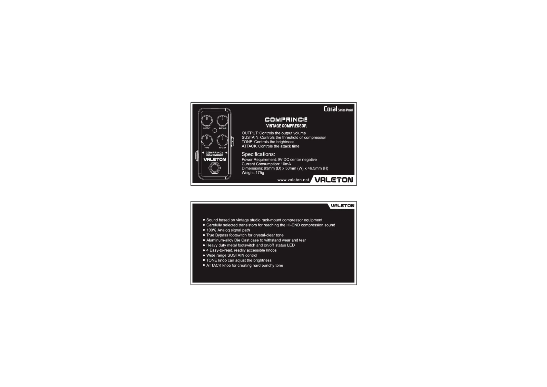 Lies die bedienungsanleitung für Valeton Comprince (1 Seiten) kostenlos online; sie gehört zur Kategorie Nicht kategorisiert. Dieses Handbuch wurde von 2 Personen als hilfreich bewertet und erhielt im Schnitt 4.5 Sterne aus 5 Bewertungen. Hast du eine Frage zu Valeton Comprince oder möchtest du andere Nutzer dieses Produkts befragen? Stelle eine Frage