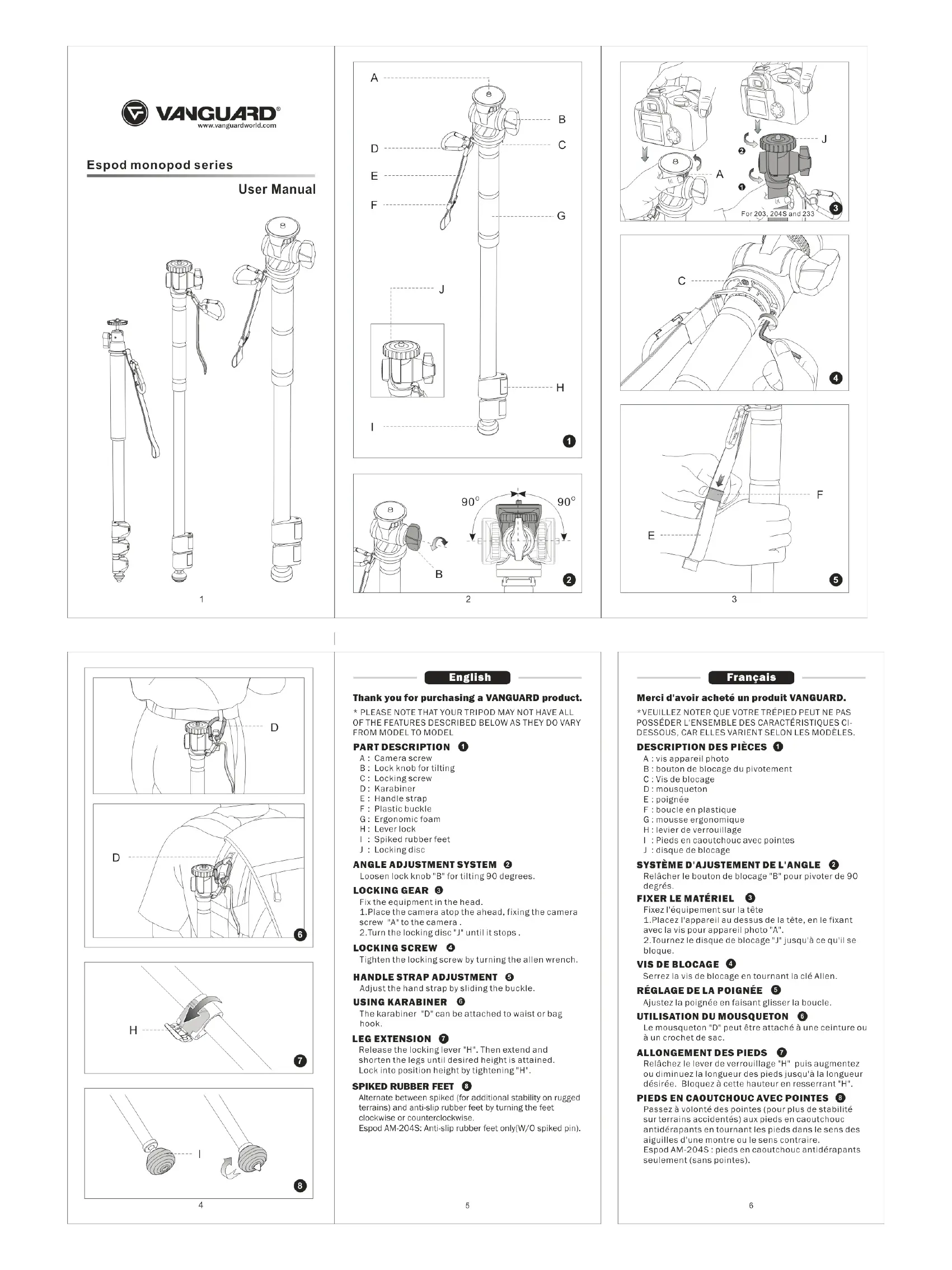 Lies die bedienungsanleitung für Vanguard Espod AM-204s (3 Seiten) kostenlos online; sie gehört zur Kategorie Stativ. Dieses Handbuch wurde von 28 Personen als hilfreich bewertet und erhielt im Schnitt 4.3 Sterne aus 14.5 Bewertungen. Hast du eine Frage zu Vanguard Espod AM-204s oder möchtest du andere Nutzer dieses Produkts befragen? Stelle eine Frage