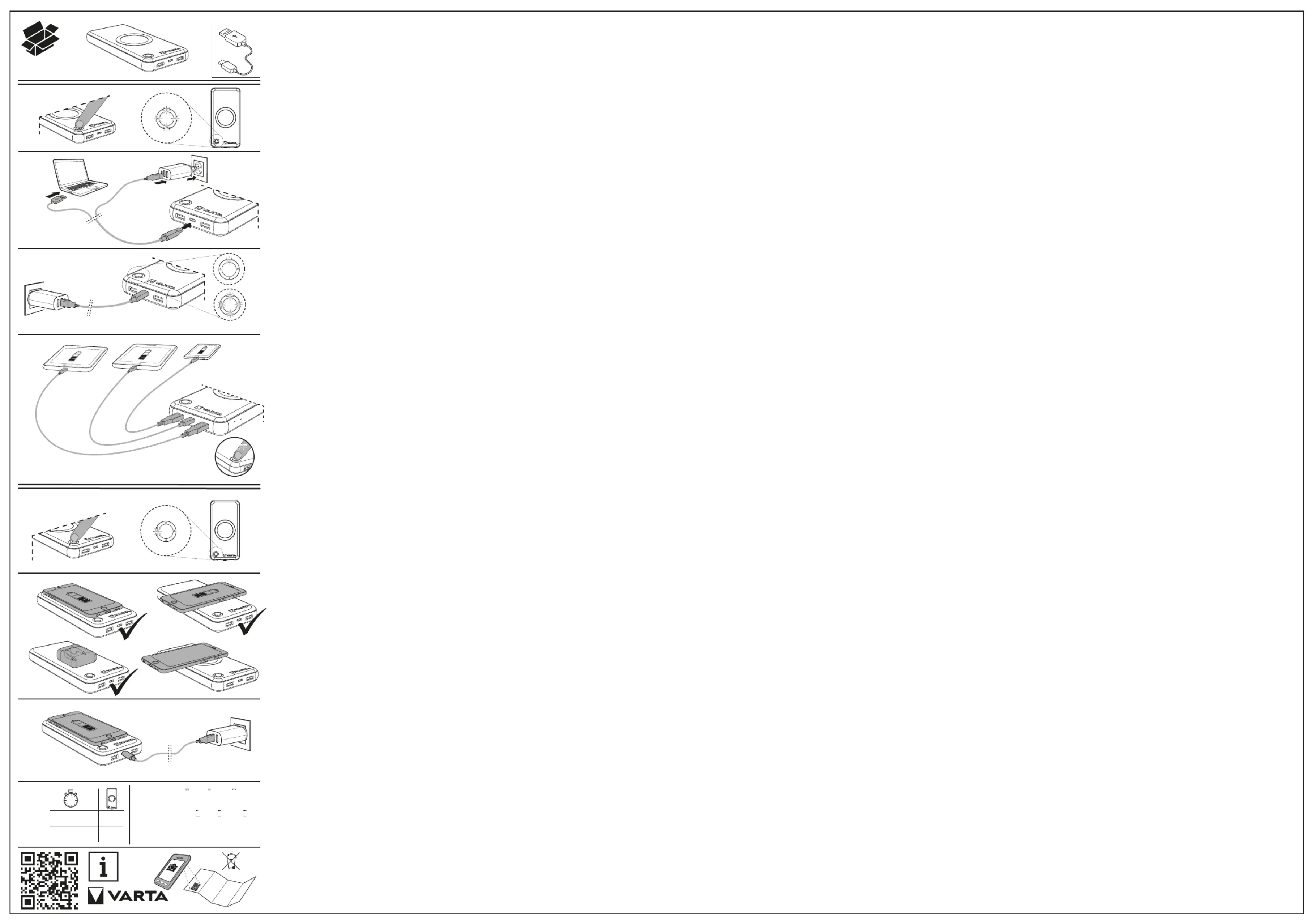 Lies die bedienungsanleitung für Varta Wireless Power Bank 15.000 57908 (2 Seiten) kostenlos online; sie gehört zur Kategorie Nicht kategorisiert. Dieses Handbuch wurde von 11 Personen als hilfreich bewertet und erhielt im Schnitt 4.3 Sterne aus 6 Bewertungen. Hast du eine Frage zu Varta Wireless Power Bank 15.000 57908 oder möchtest du andere Nutzer dieses Produkts befragen? Stelle eine Frage