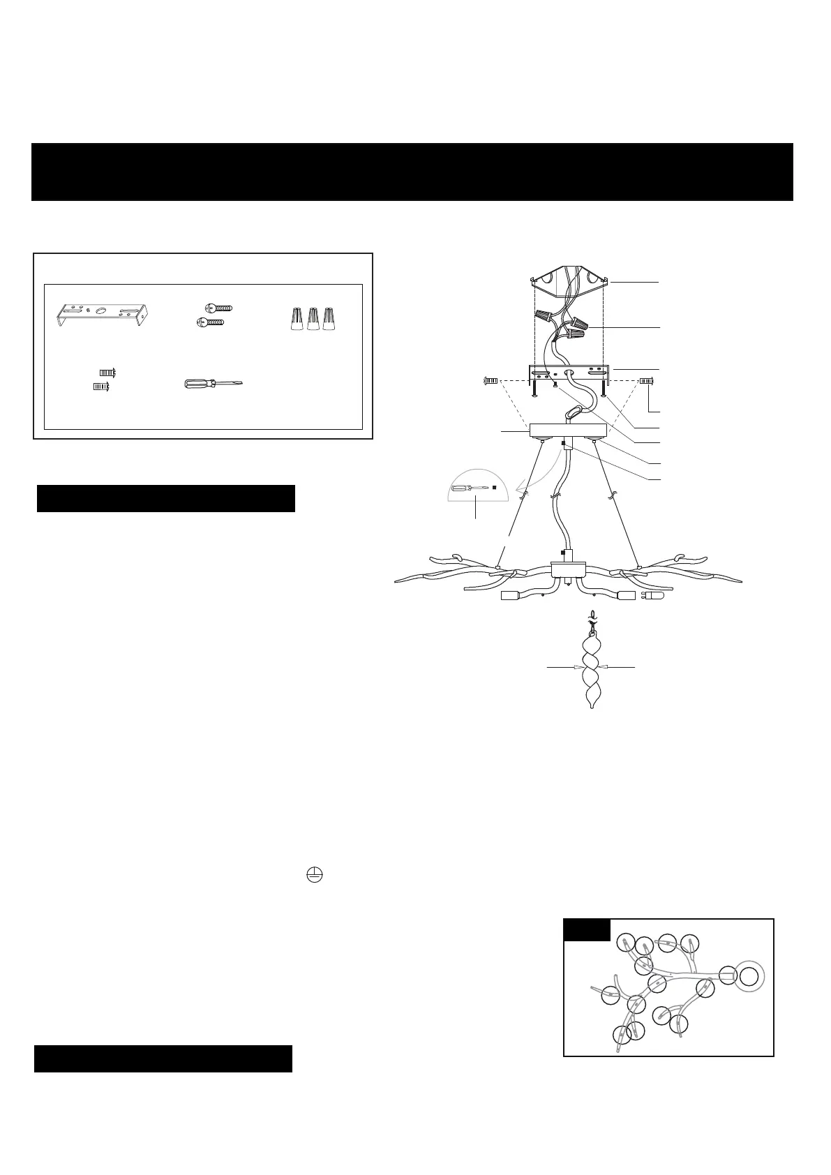 --- Attach the fixture ground wire (labeled ) to the mounting strap with the green ground screw.
