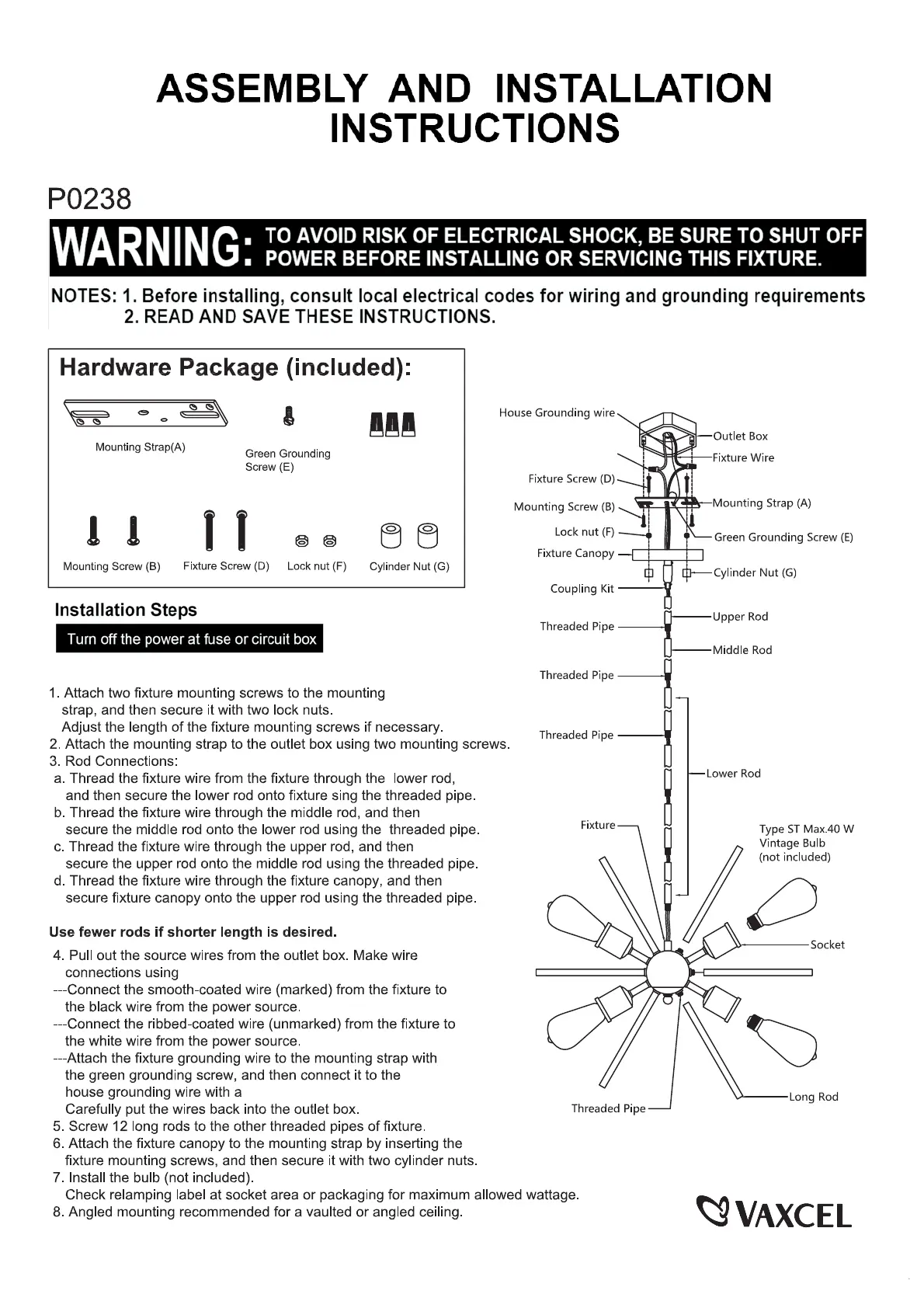 Vaxcel P0238 Bedienungsanleitung