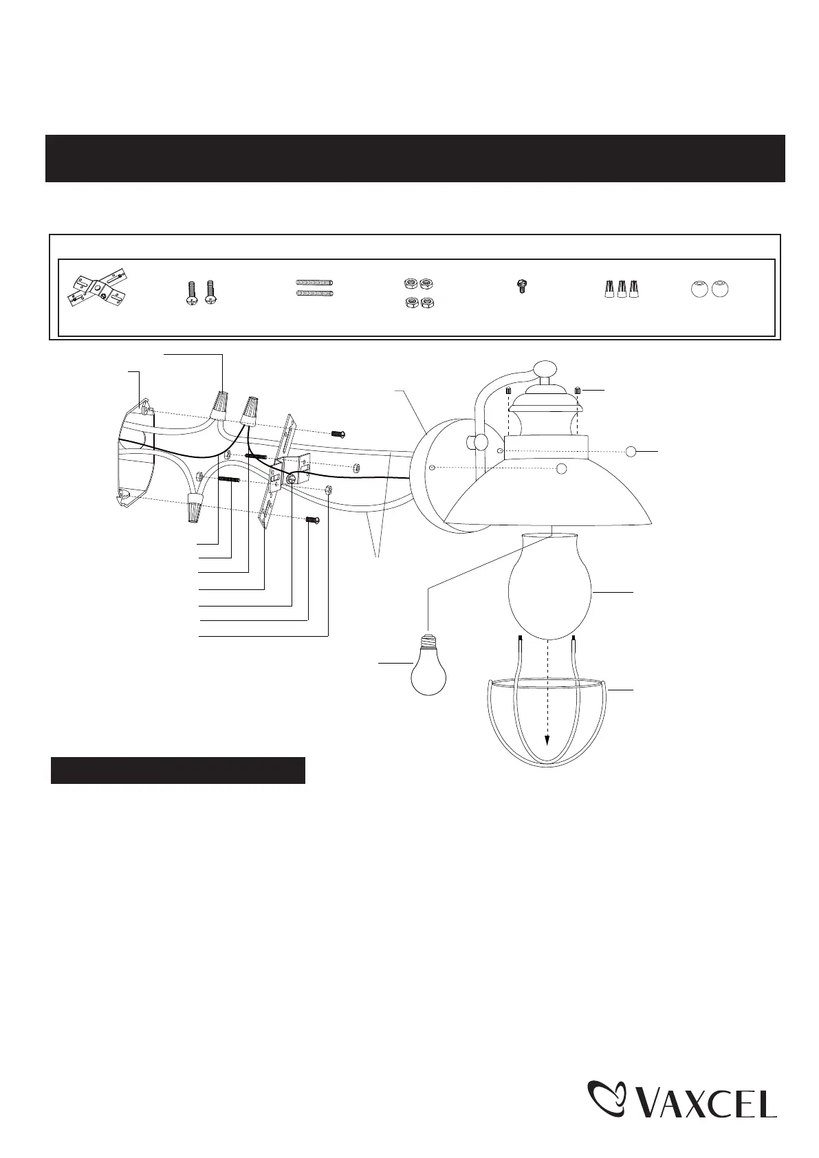 4. Place the glass shade into the metal cover carefully, and then attach the metal cover to the fixture by using two ball