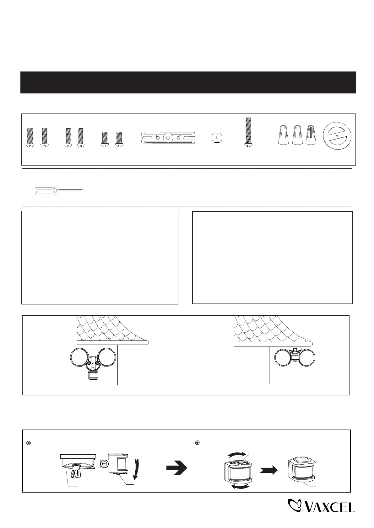 Before installing the light fixture under an eave, the sensor head must be rotated as shown in the next two steps for