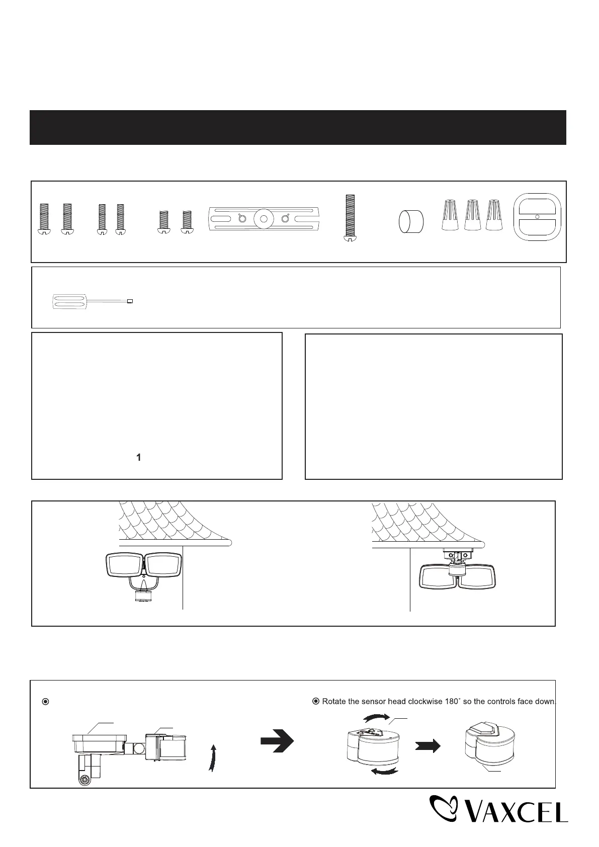 Before installing the light fixture under an eave, the sensor head must be rotated as shown in the next two steps for