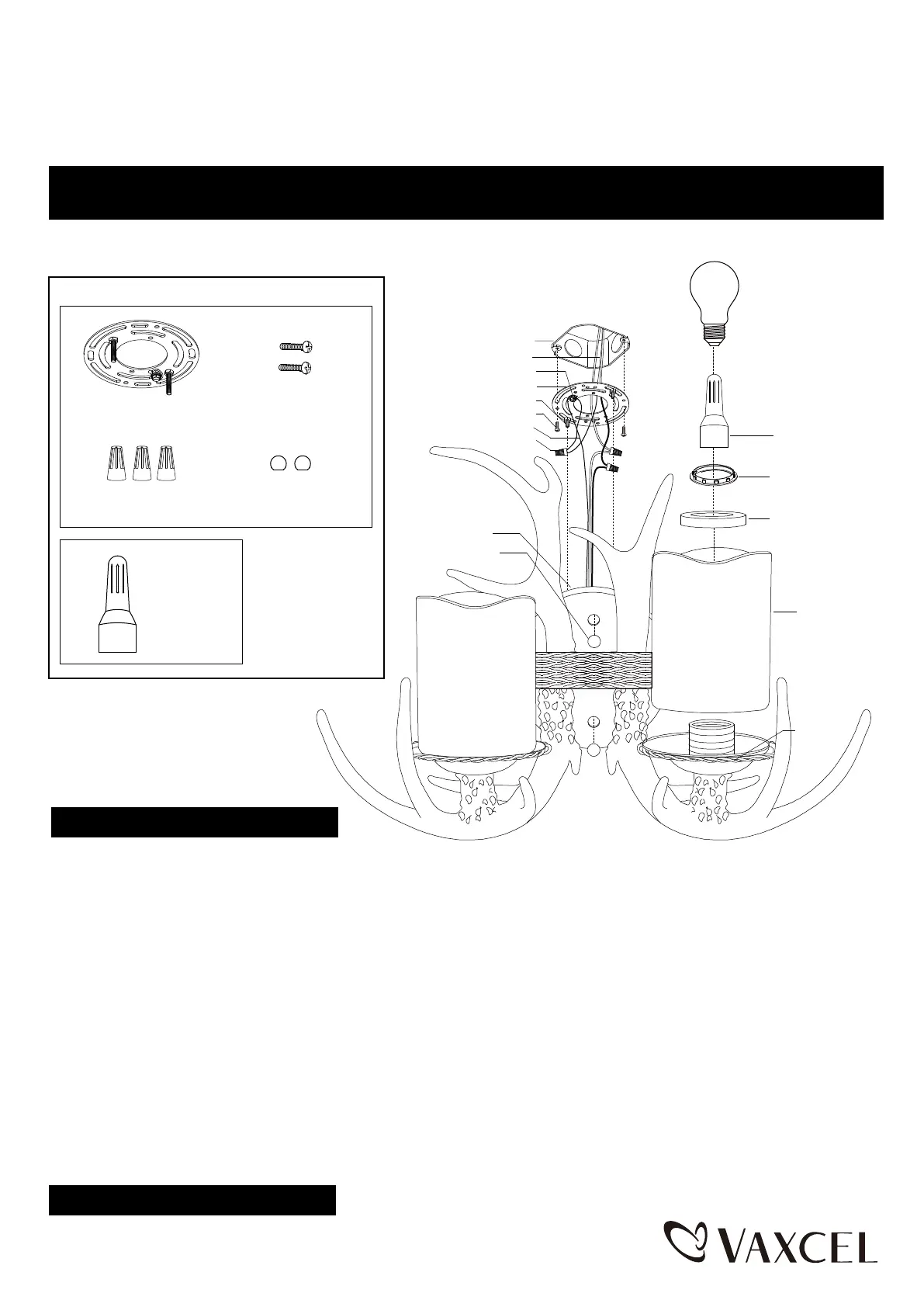 4. Attach the glass shades onto the glass holders, secure them with the spacer and socket rings, using supplied socket