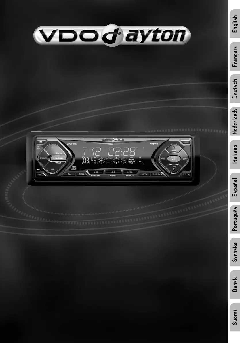 Lies die bedienungsanleitung für VDO Dayton CD 2102 (15 Seiten) kostenlos online; sie gehört zur Kategorie Autoradio. Dieses Handbuch wurde von 22 Personen als hilfreich bewertet und erhielt im Schnitt 4.5 Sterne aus 3 Bewertungen. Hast du eine Frage zu VDO Dayton CD 2102 oder möchtest du andere Nutzer dieses Produkts befragen? Stelle eine Frage