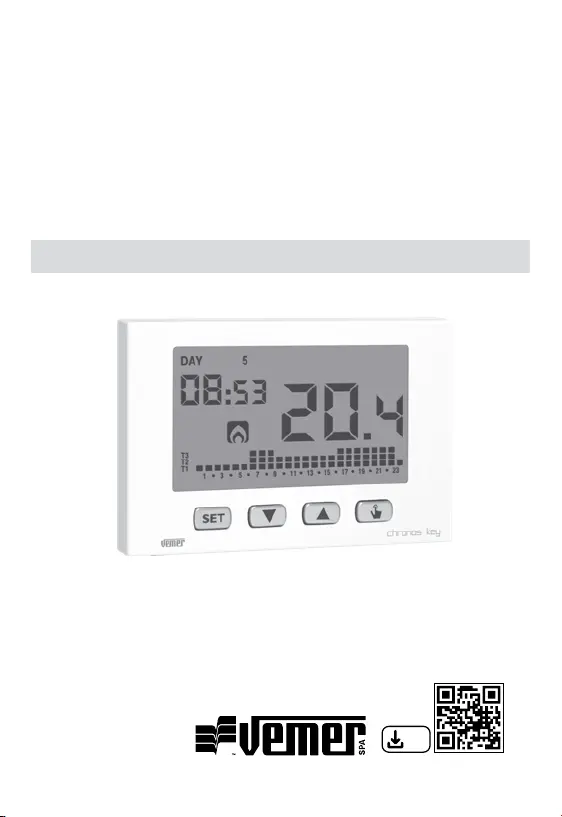 Lies die bedienungsanleitung für Vemer Chronos Key (40 Seiten) kostenlos online; sie gehört zur Kategorie Thermostat. Dieses Handbuch wurde von 29 Personen als hilfreich bewertet und erhielt im Schnitt 4.8 Sterne aus 15 Bewertungen. Hast du eine Frage zu Vemer Chronos Key oder möchtest du andere Nutzer dieses Produkts befragen? Stelle eine Frage