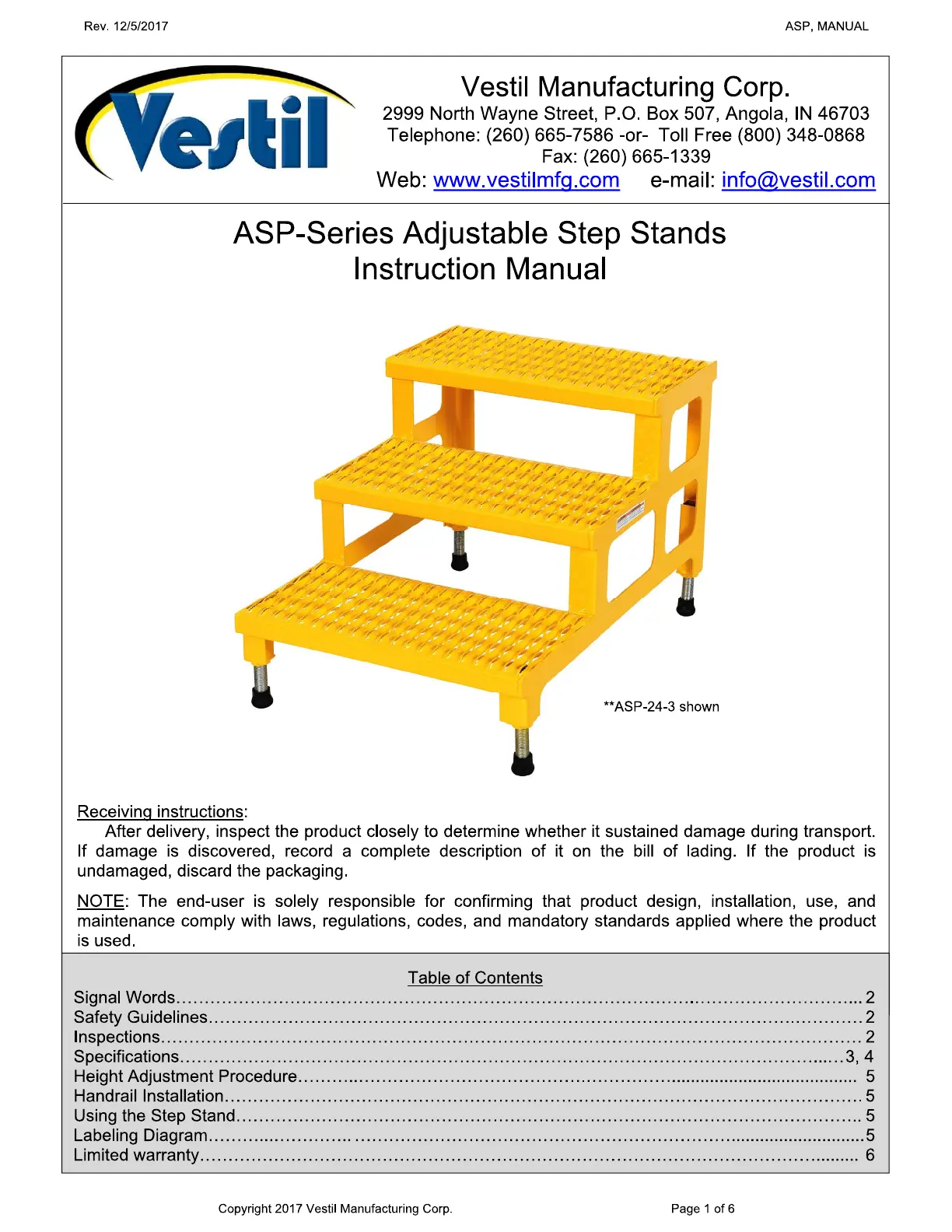 Lies die bedienungsanleitung für Vestil ASP-36 (6 Seiten) kostenlos online; sie gehört zur Kategorie Leiter und Gerüst. Dieses Handbuch wurde von 2 Personen als hilfreich bewertet und erhielt im Schnitt 4.9 Sterne aus 7 Bewertungen. Hast du eine Frage zu Vestil ASP-36 oder möchtest du andere Nutzer dieses Produkts befragen? Stelle eine Frage