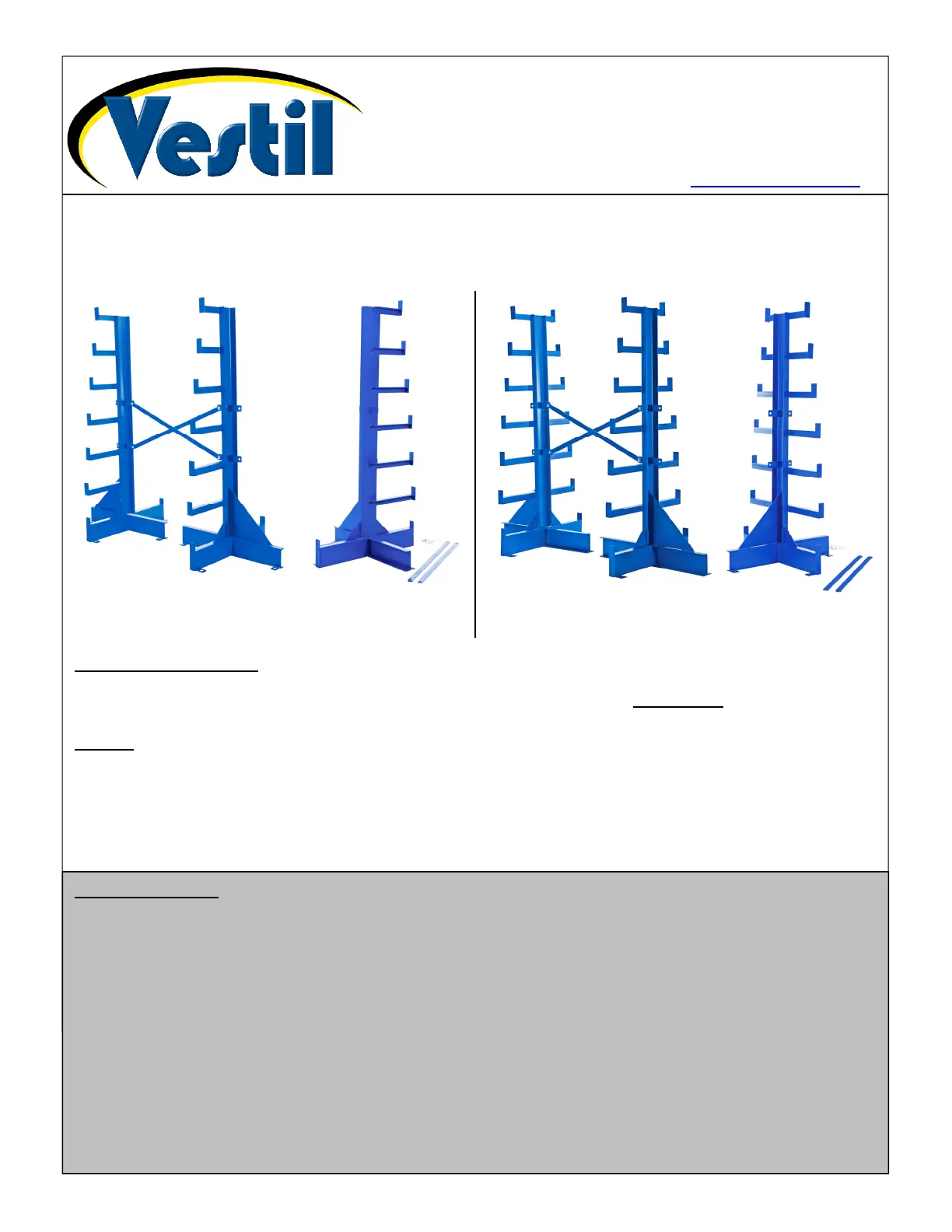 Vestil is not responsible for any consequential damages sustained while assembling, installing, using or maintaining