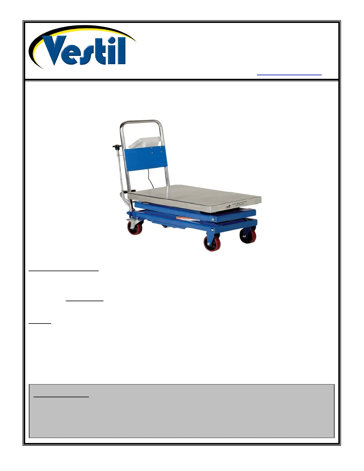 Bedienungsanleitung Nicht kategorisiert Vestil