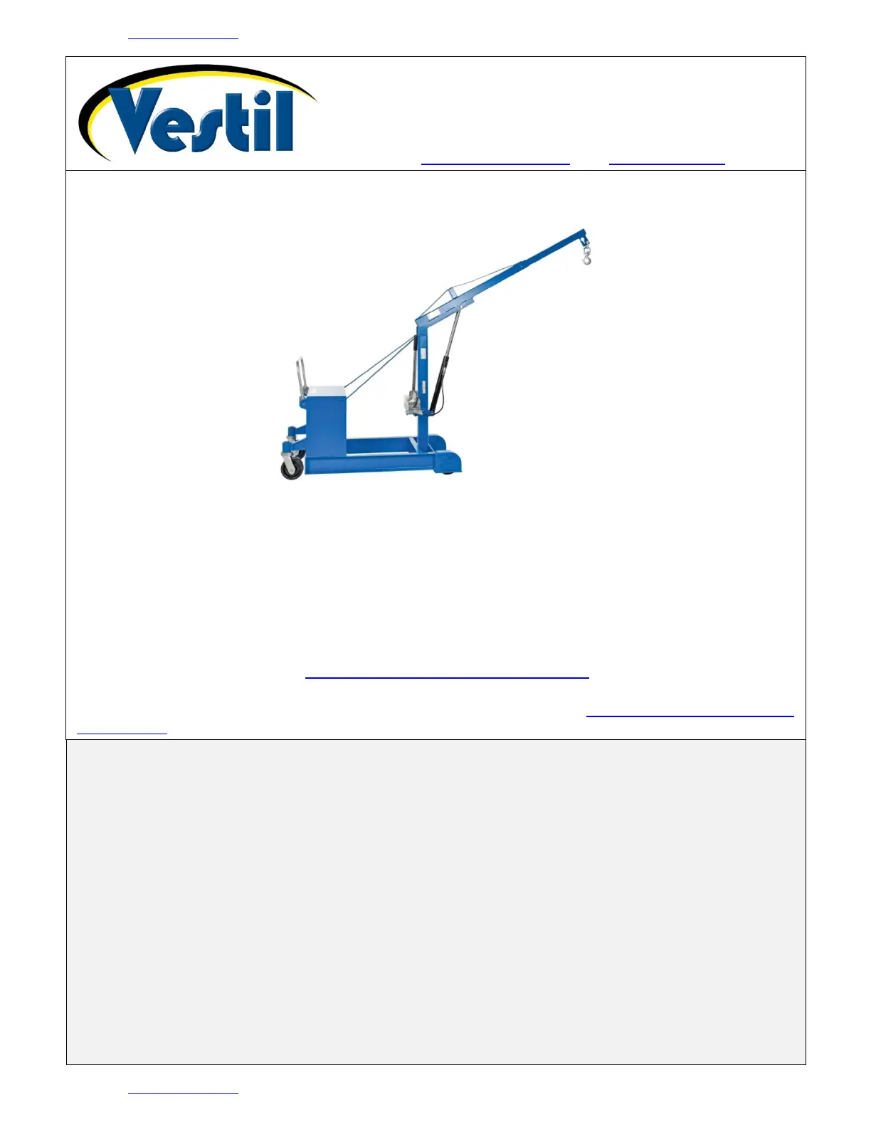 TABLE OF CONTENTSCopyright 2022 Vestil Manufacturing Co. Page 1 of 13