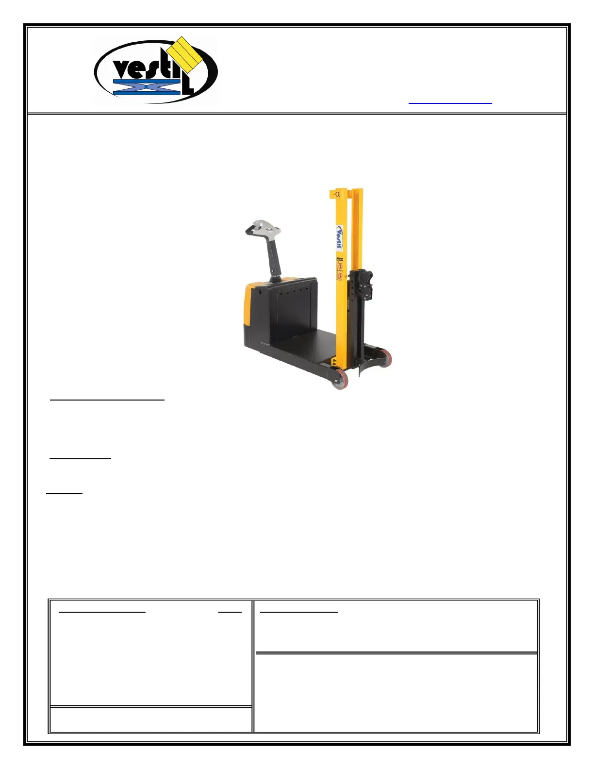 Bedienungsanleitung Nicht kategorisiert Vestil