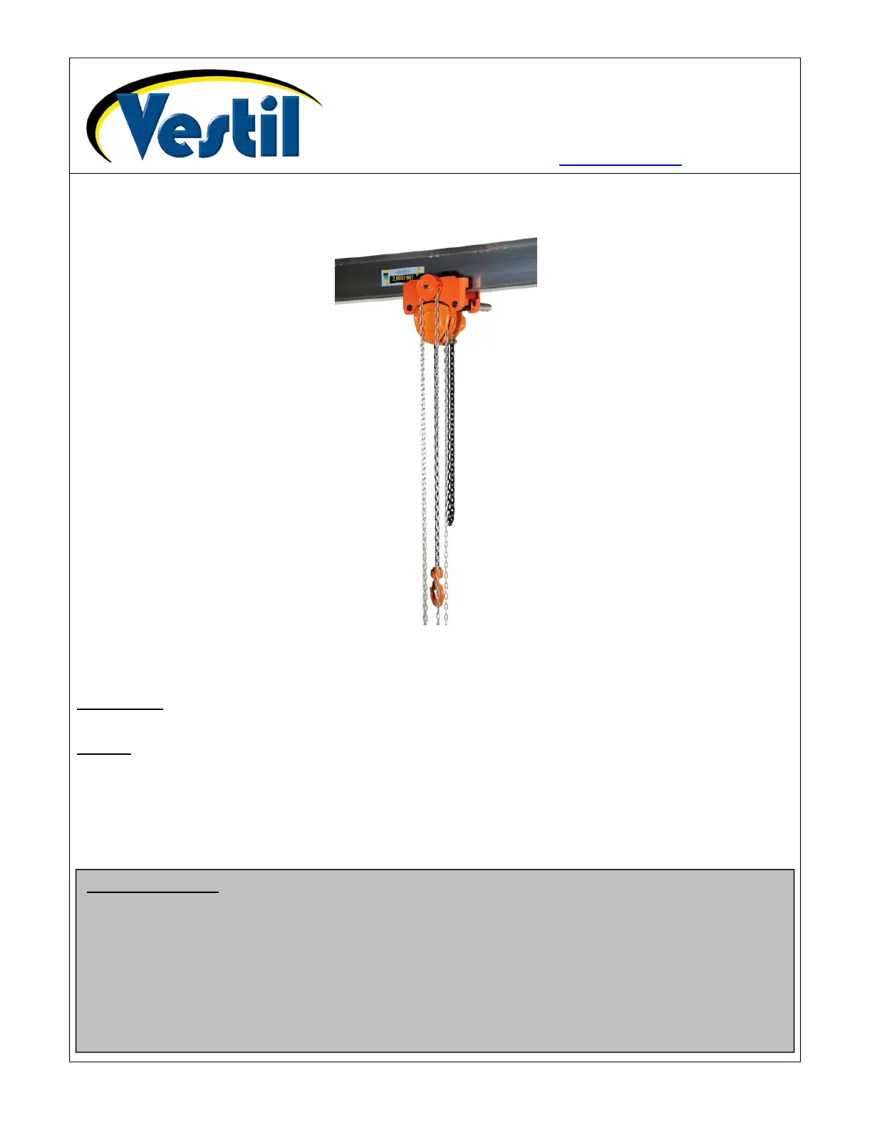 Bedienungsanleitung Hebezeug Vestil