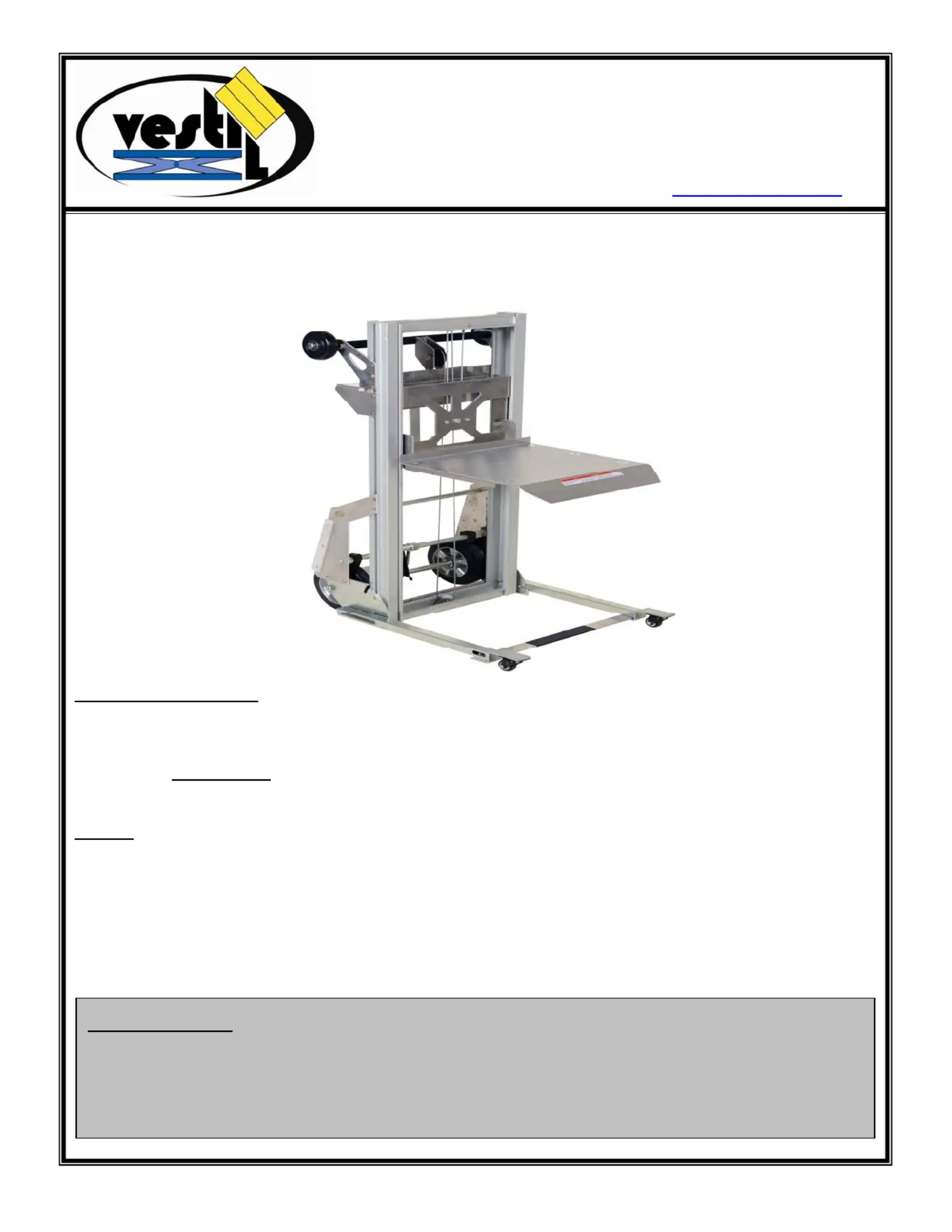 Bedienungsanleitung Nicht kategorisiert Vestil