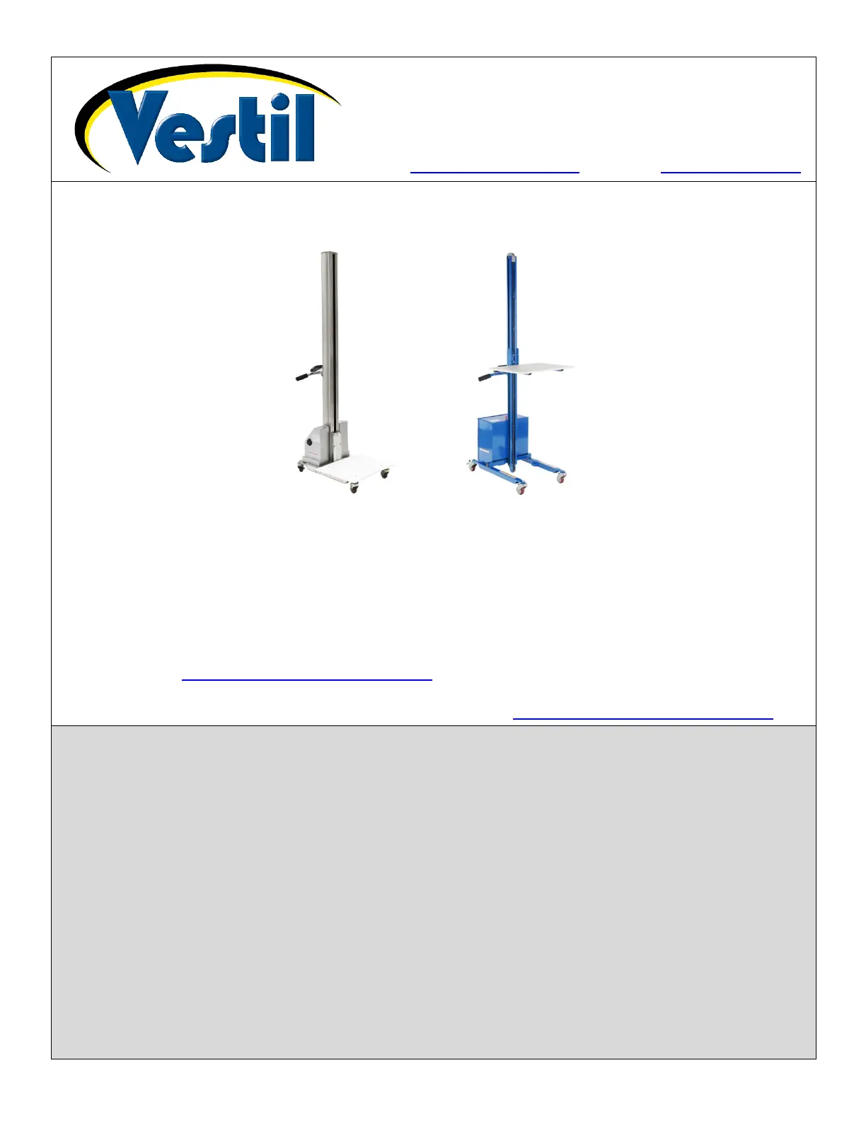 Additional copies of this instruction manual may be downloaded from https://www.vestil.com/page-manuals.php