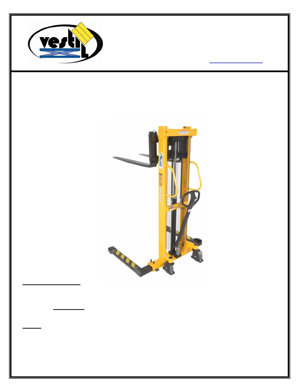 Bedienungsanleitung Gabelstapler Vestil