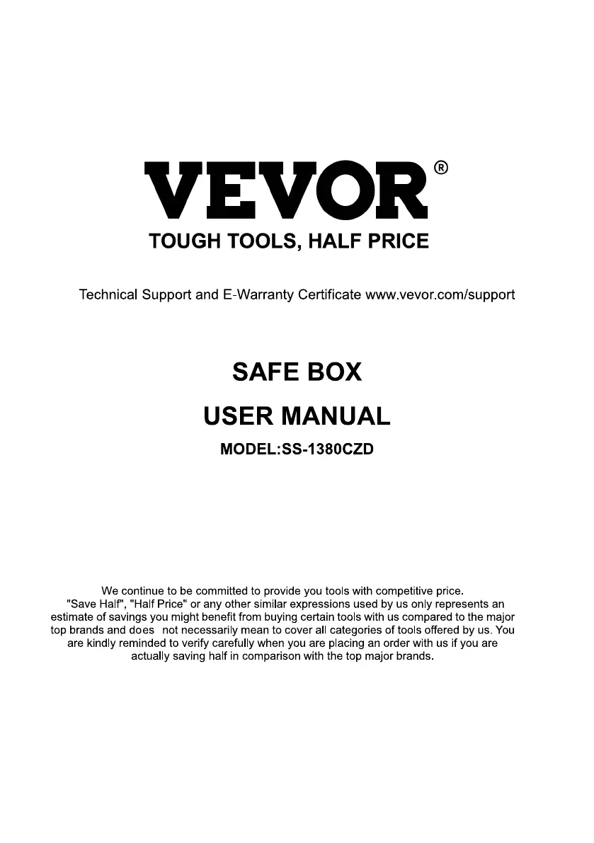 Lies die bedienungsanleitung für Vevor SS-1380CZD (96 Seiten) kostenlos online; sie gehört zur Kategorie Sicher. Dieses Handbuch wurde von 16 Personen als hilfreich bewertet und erhielt im Schnitt 4.5 Sterne aus 8.5 Bewertungen. Hast du eine Frage zu Vevor SS-1380CZD oder möchtest du andere Nutzer dieses Produkts befragen? Stelle eine Frage
