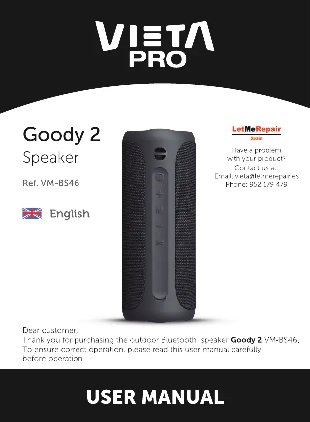 Lies die bedienungsanleitung für VIETA PRO Goody 2 (18 Seiten) kostenlos online; sie gehört zur Kategorie Lautsprecher. Dieses Handbuch wurde von 69 Personen als hilfreich bewertet und erhielt im Schnitt 4.1 Sterne aus 4 Bewertungen. Hast du eine Frage zu VIETA PRO Goody 2 oder möchtest du andere Nutzer dieses Produkts befragen? Stelle eine Frage
