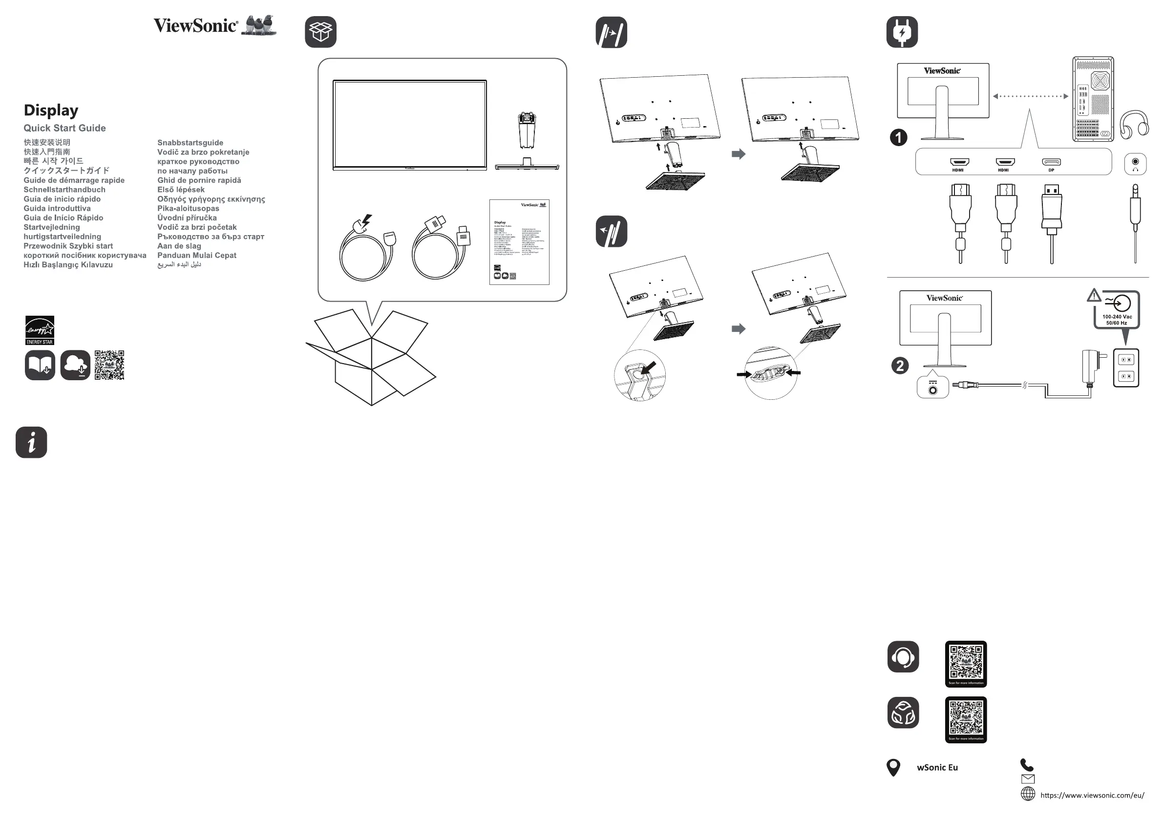- 국가 또는 지역에 따라 제한 보증이 상자에 포함되거나 포함되지 않을 수 있습니다. 제한 보증이 상자에 포함되어 있지 않을 경우 ViewSonic 웹사이트에서