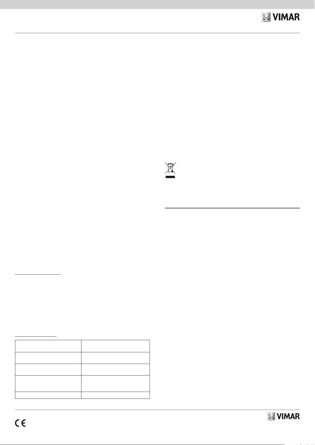 Vimar SpA dichiara che l’apparecchiatura radio è conforme alla direttiva 2014/53/UE. Il