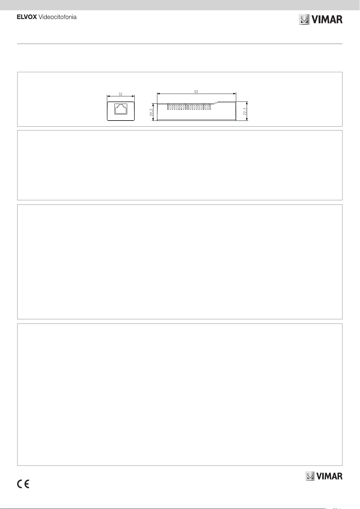 Lies die bedienungsanleitung für Vimar ELVOX 40168 (4 Seiten) kostenlos online; sie gehört zur Kategorie Fotokamera. Dieses Handbuch wurde von 25 Personen als hilfreich bewertet und erhielt im Schnitt 3.7 Sterne aus 13 Bewertungen. Hast du eine Frage zu Vimar ELVOX 40168 oder möchtest du andere Nutzer dieses Produkts befragen? Stelle eine Frage