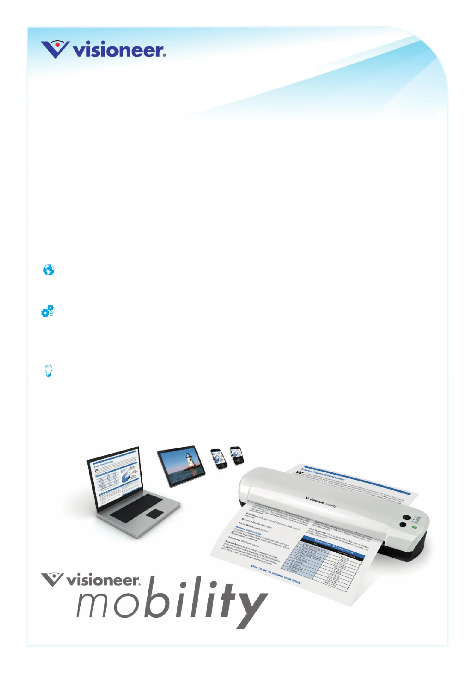 Lies die bedienungsanleitung für Visioneer Mobility (2 Seiten) kostenlos online; sie gehört zur Kategorie Scanner. Dieses Handbuch wurde von 44 Personen als hilfreich bewertet und erhielt im Schnitt 4.0 Sterne aus 6 Bewertungen. Hast du eine Frage zu Visioneer Mobility oder möchtest du andere Nutzer dieses Produkts befragen? Stelle eine Frage