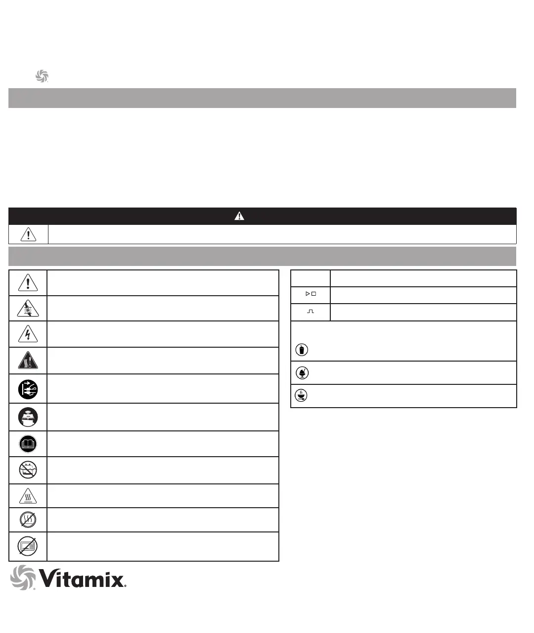 Programme Symbols (correspond to Vitamix Recipes) -