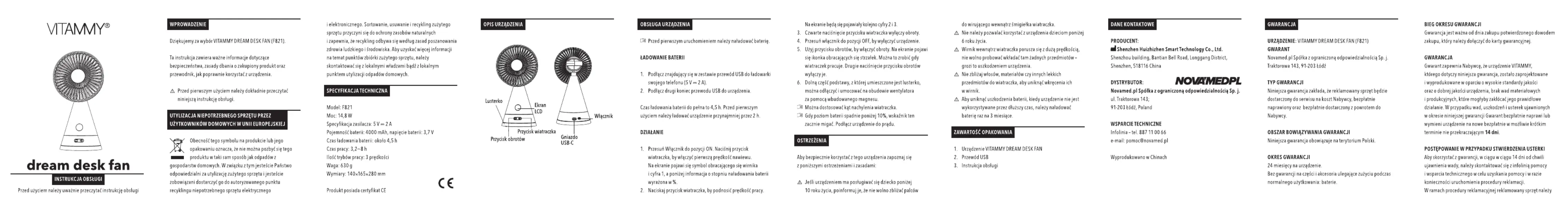 Vitammy Dream Desk Fan Bedienungsanleitung