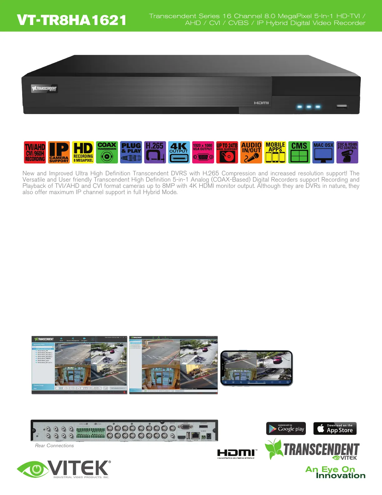 New and Improved Ultra High Definition Transcendent DVRS with H.265 Compression and increased resolution support! The