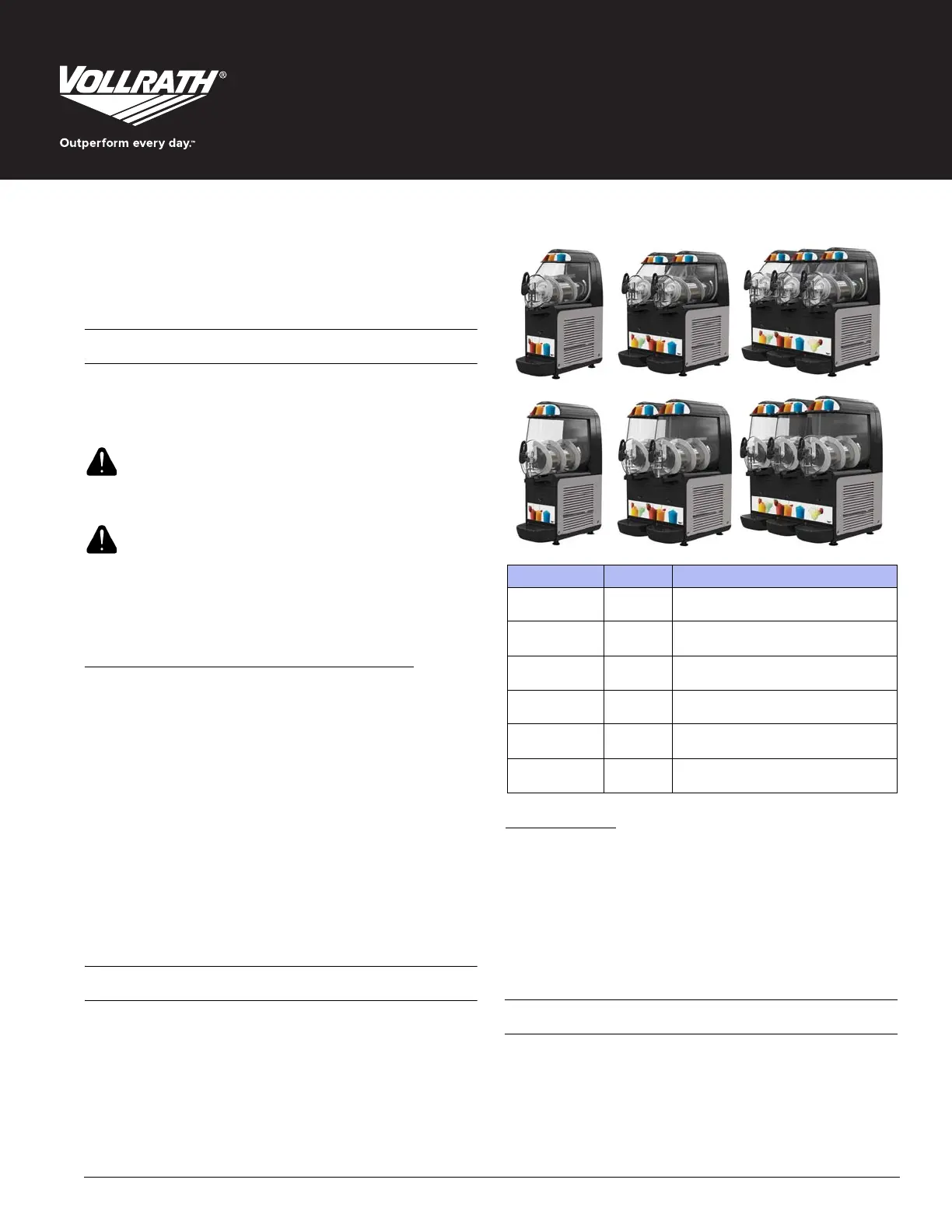 Thank you for purchasing this Vollrath equipment. Before operating the