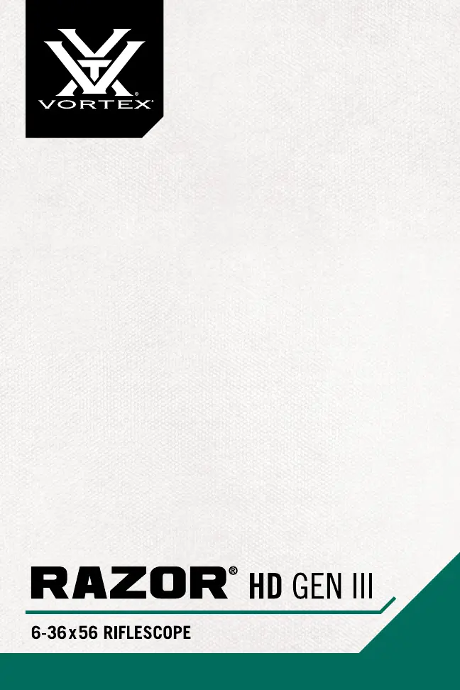Lies die bedienungsanleitung für Vortex Razor HD Gen III 6-36x56 (9 Seiten) kostenlos online; sie gehört zur Kategorie Nicht kategorisiert. Dieses Handbuch wurde von 14 Personen als hilfreich bewertet und erhielt im Schnitt 4.8 Sterne aus 7.5 Bewertungen. Hast du eine Frage zu Vortex Razor HD Gen III 6-36x56 oder möchtest du andere Nutzer dieses Produkts befragen? Stelle eine Frage