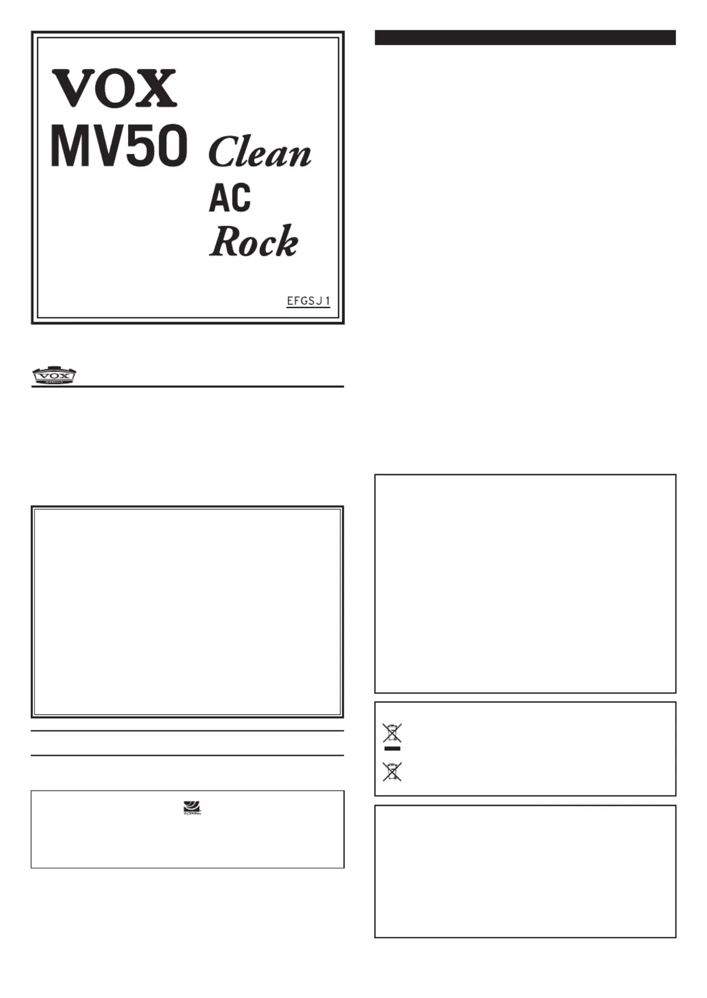 Vox MV50 AC Bedienungsanleitung