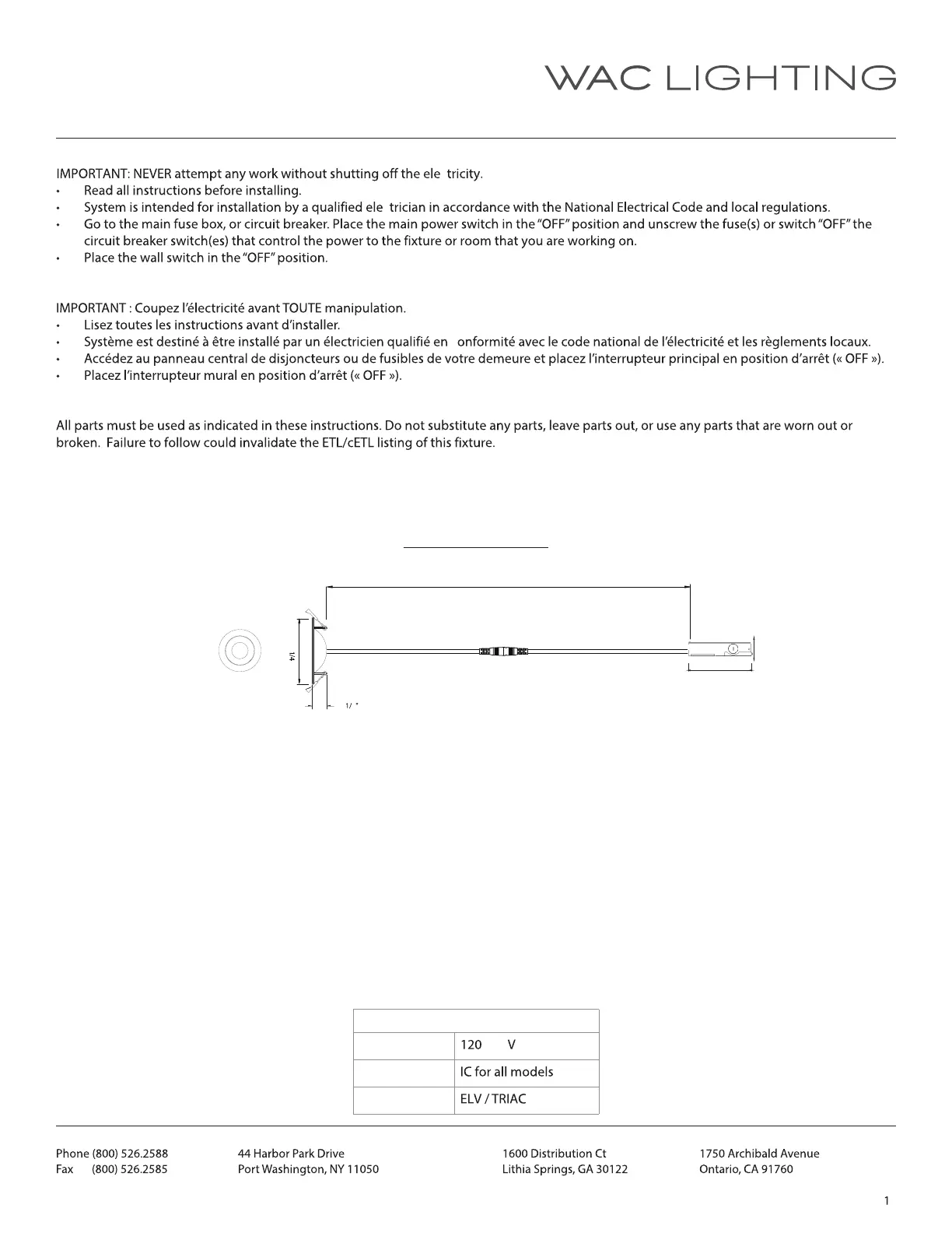Bedienungsanleitung Nicht kategorisiert WAC Lighting