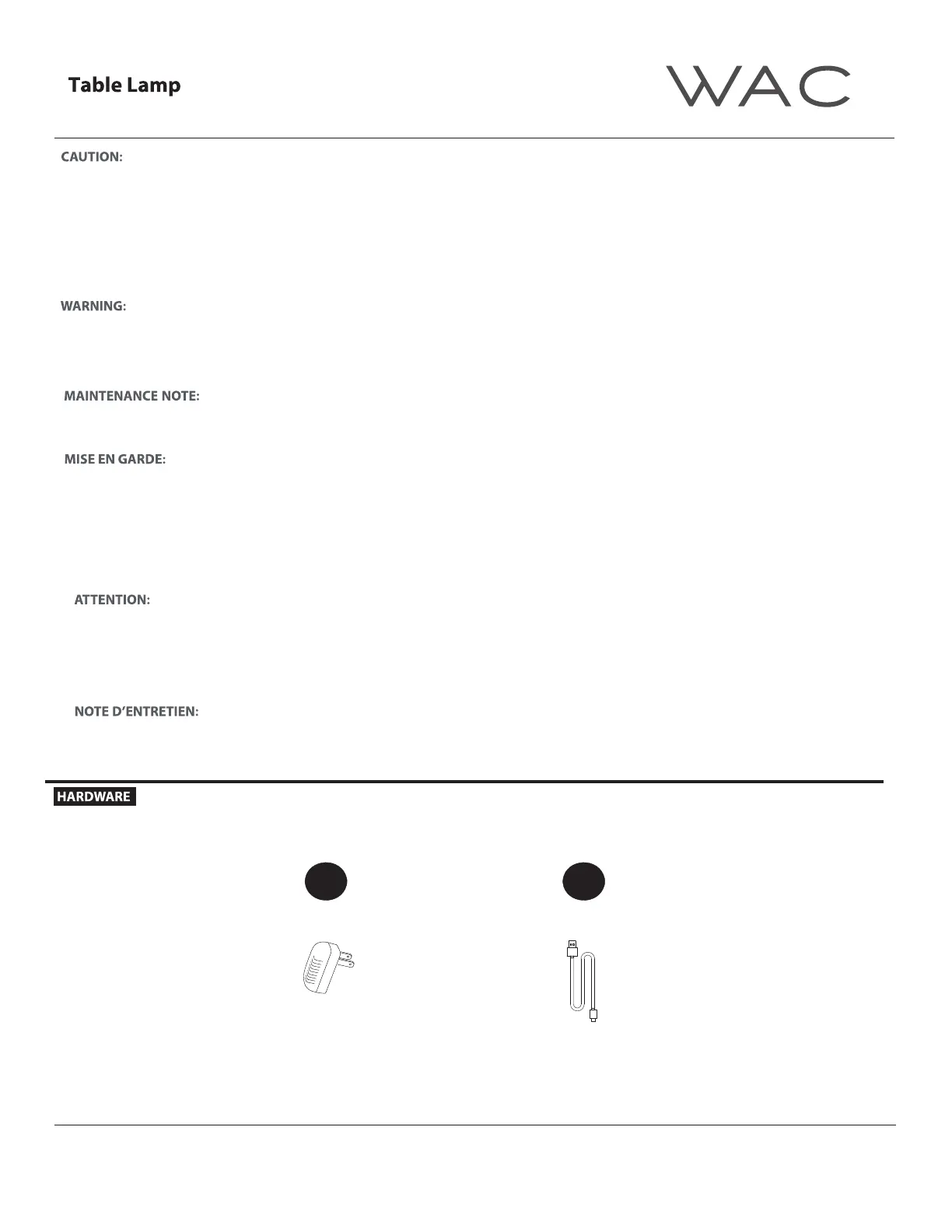 seulement avec les pièces et/ou accessoires fournis pour être utilisés avec les produits WAC. Remplacer des pièces ou